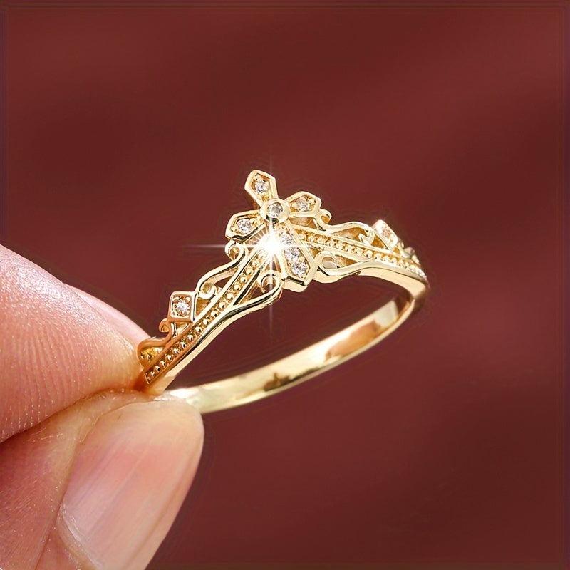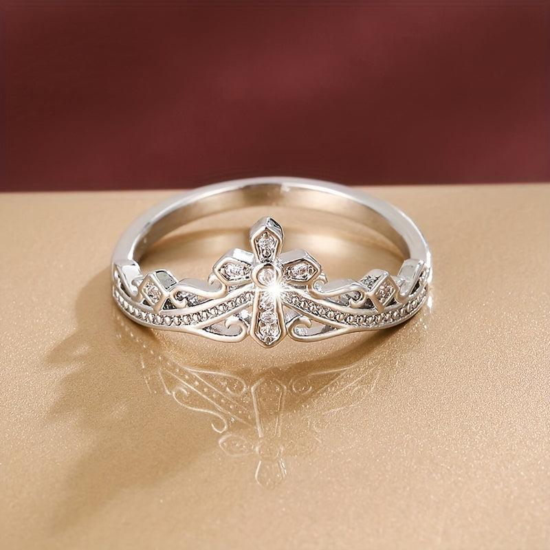 Elegant crown ring featuring artificial synthetic zirconia, perfect for women who love a touch of sparkle.