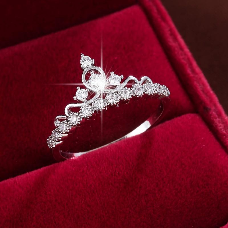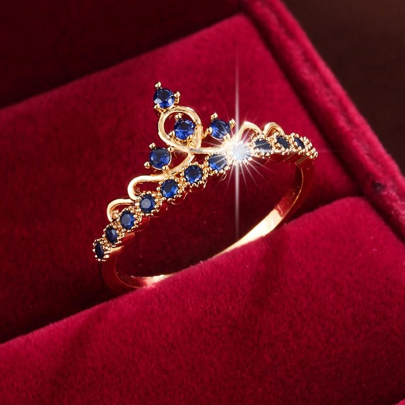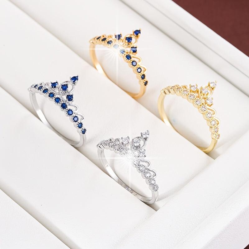 Elegant and stylish women's ring featuring synthetic zirconia stones in a crown design.