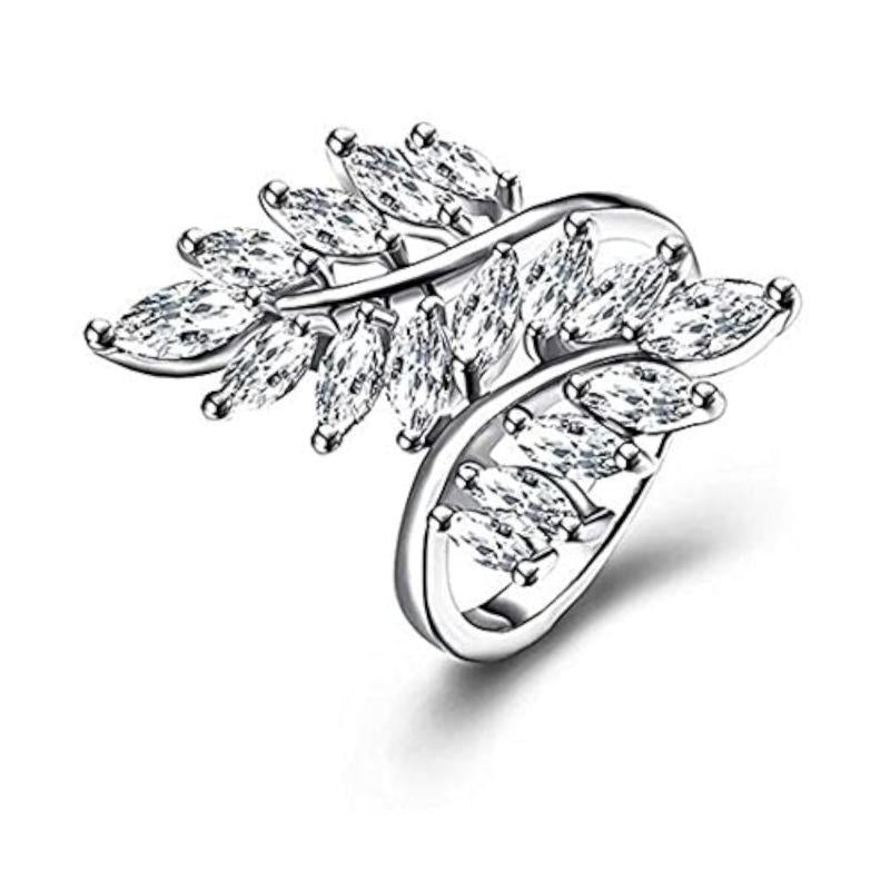 Add a touch of glamour with this fabulous adjustable ring featuring a crystal leaf design. Perfect for any occasion.