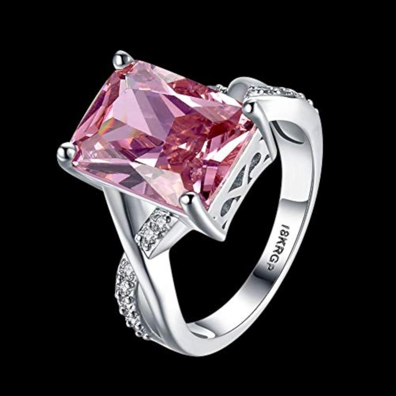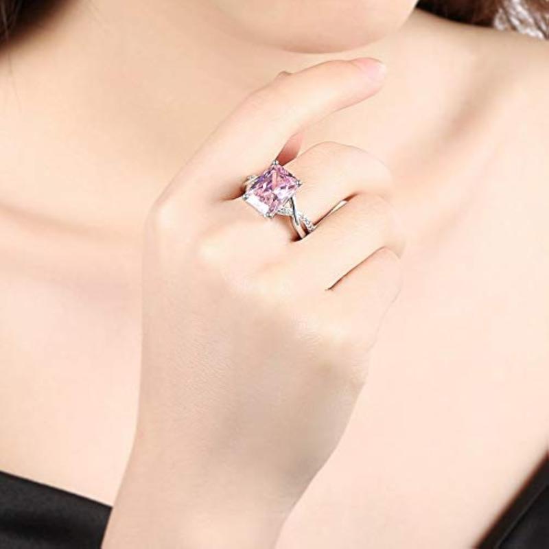 Elegant A5 Crystal Pink Big Crystal ring made with high-quality 925 sterling silver plating.