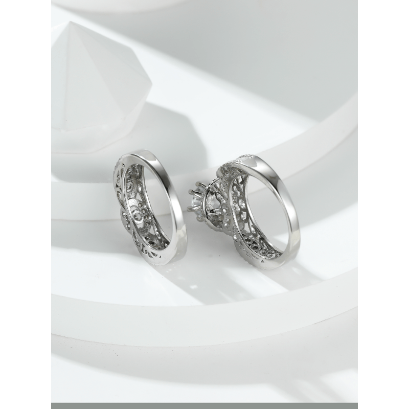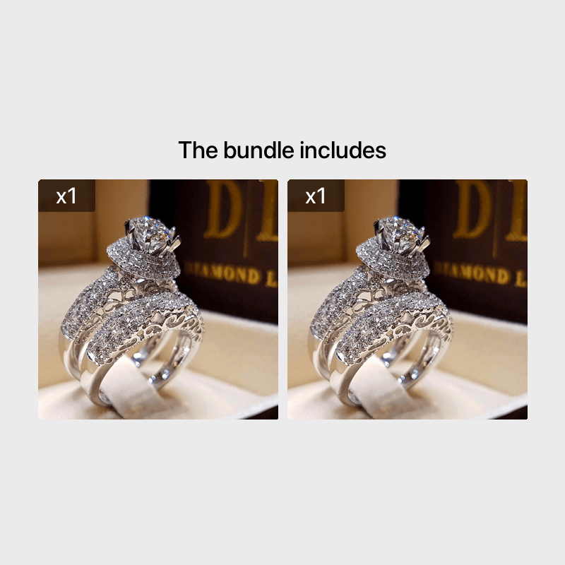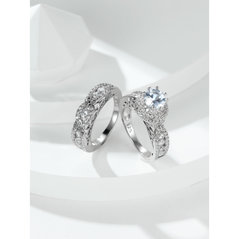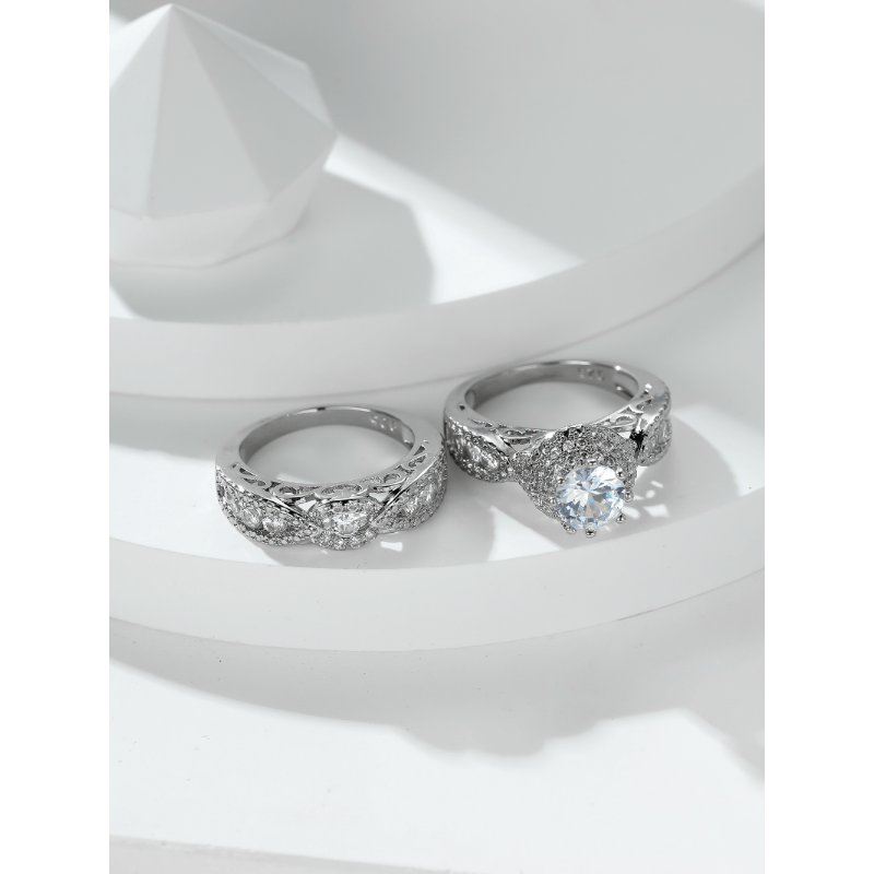 Stunning bridal wedding ring set featuring a big zircon stone, perfect for promise, love, and engagement. Make a statement with these elegant rings.