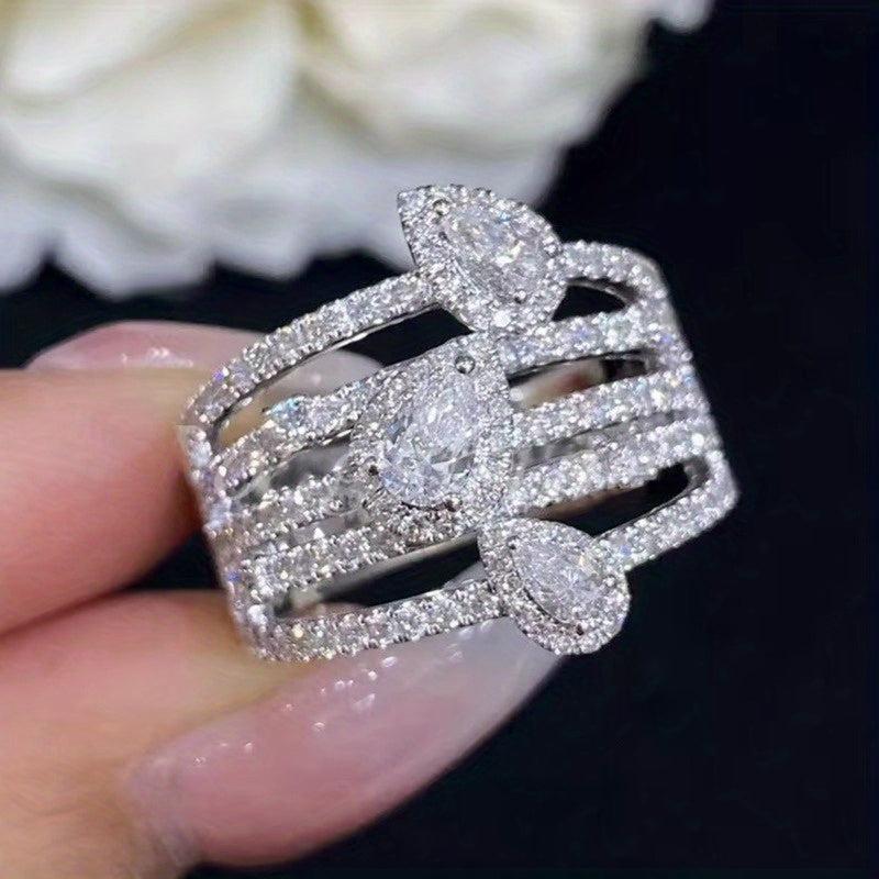Stunning April birthstone ring with a teardrop design, perfect for daily wear and special occasions. Hollow band adds a unique touch.