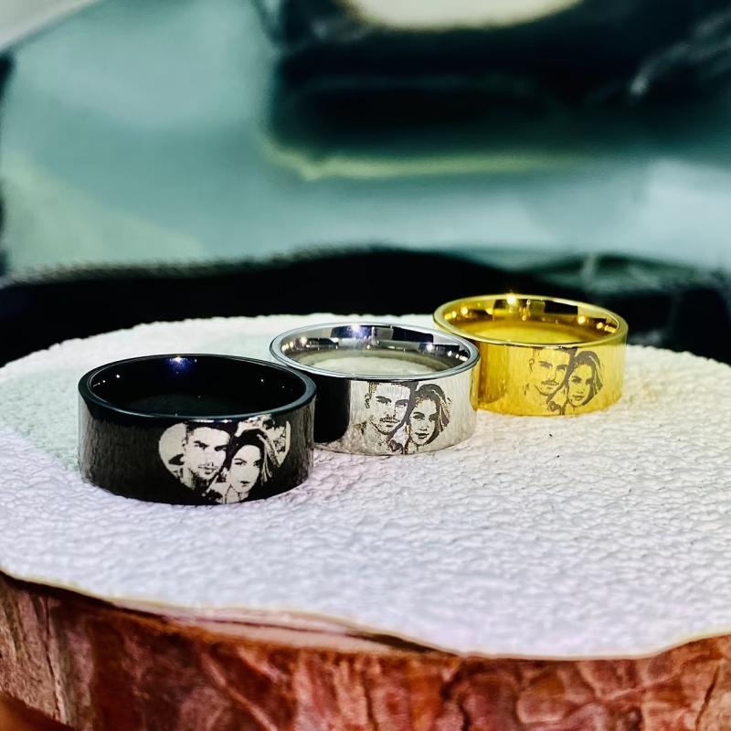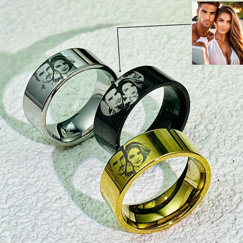 This unique ring allows you to engrave a special picture, making it a perfect gift for couples or families. Customize it with a cherished photo for a truly one-of-a-kind piece.