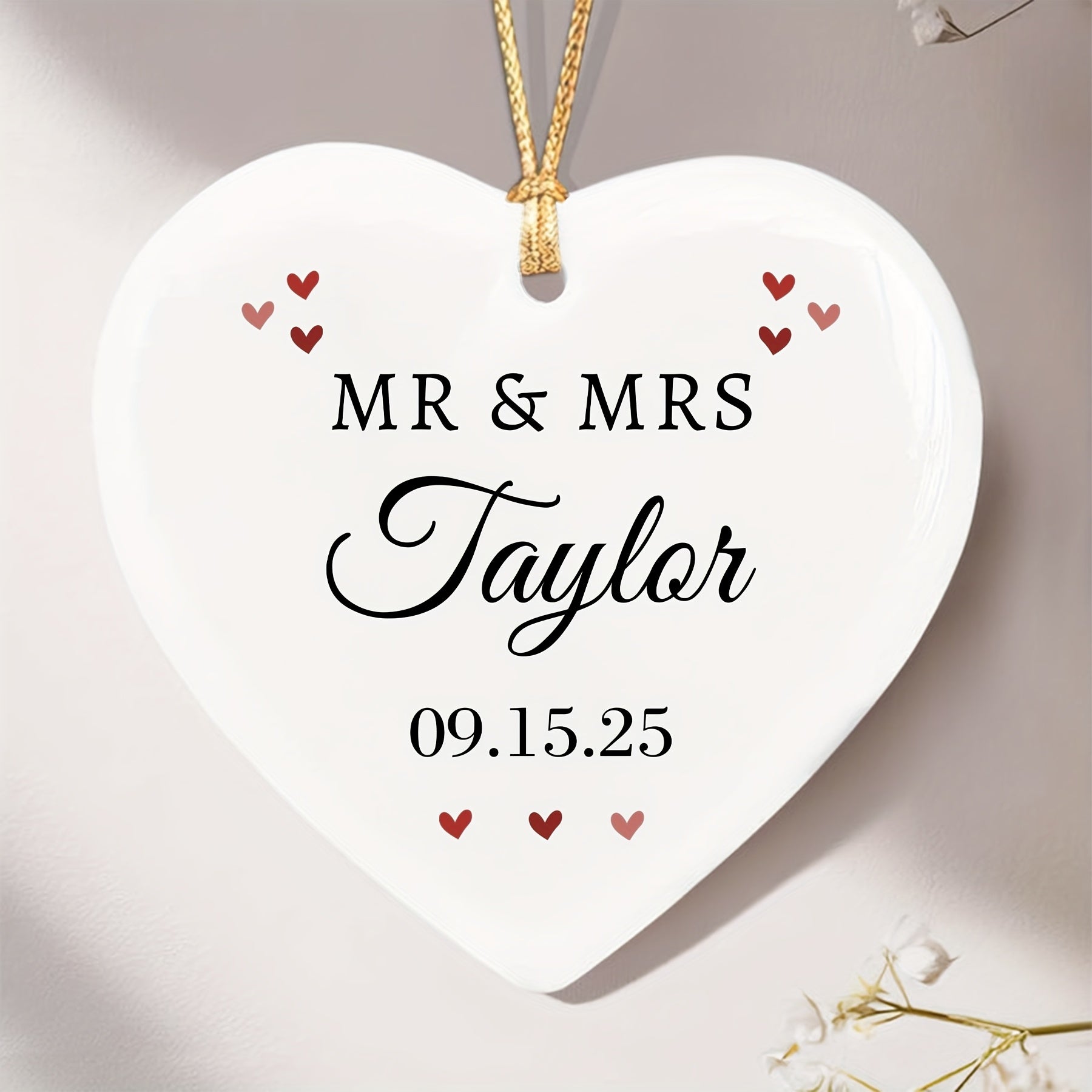 This personalized MR & MRS ceramic ornament is a perfect gift for weddings, anniversaries, or any special occasion. Add names and date for a unique touch.