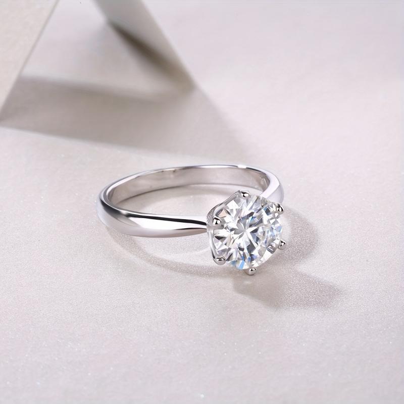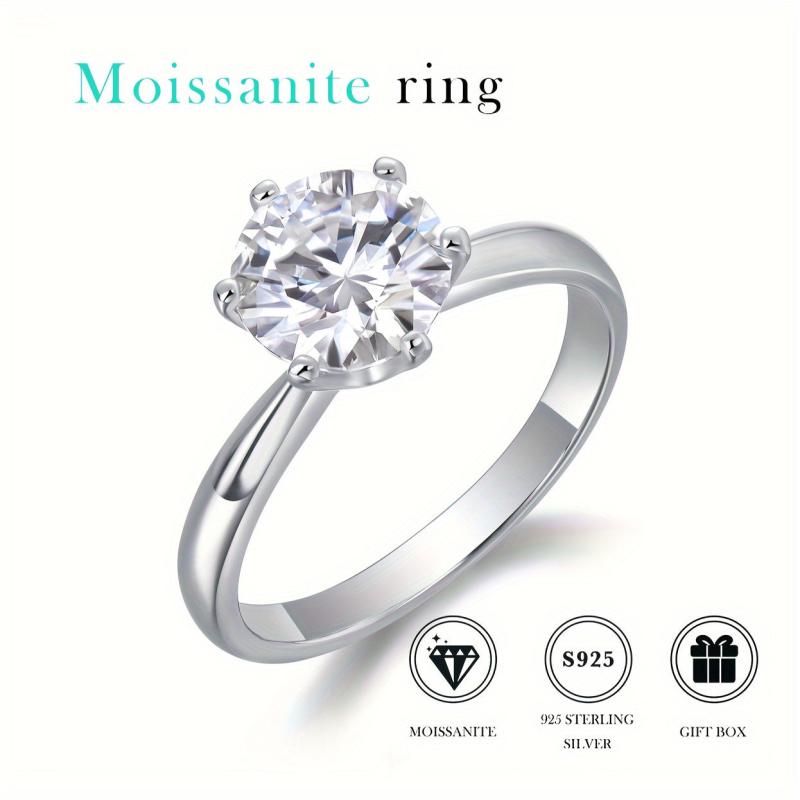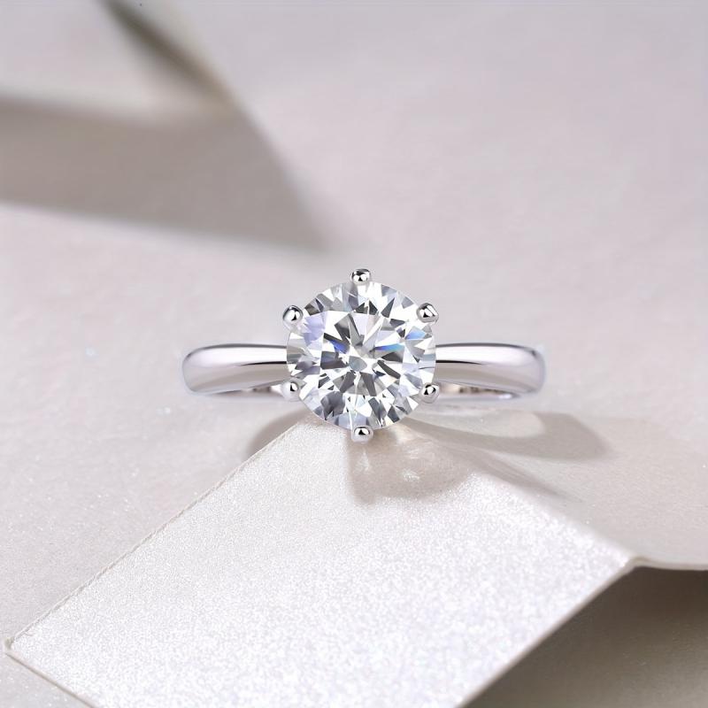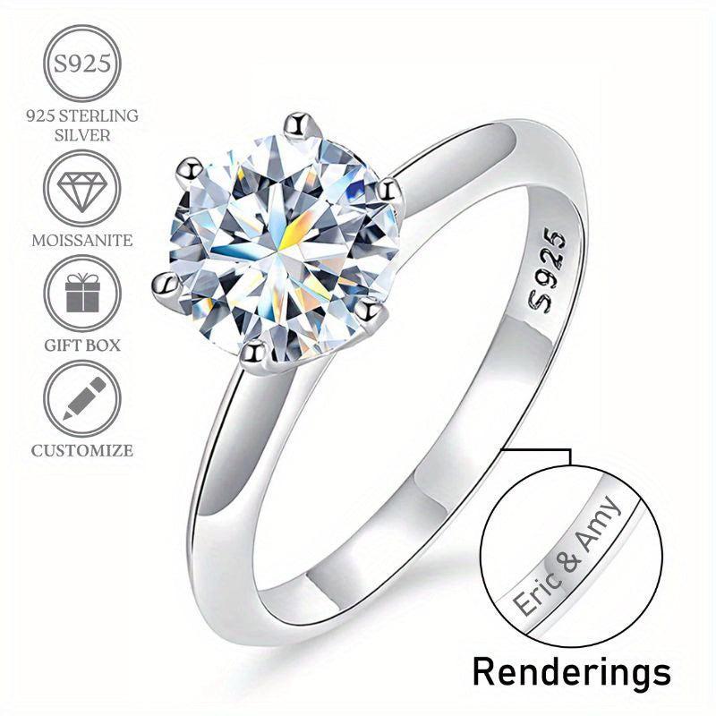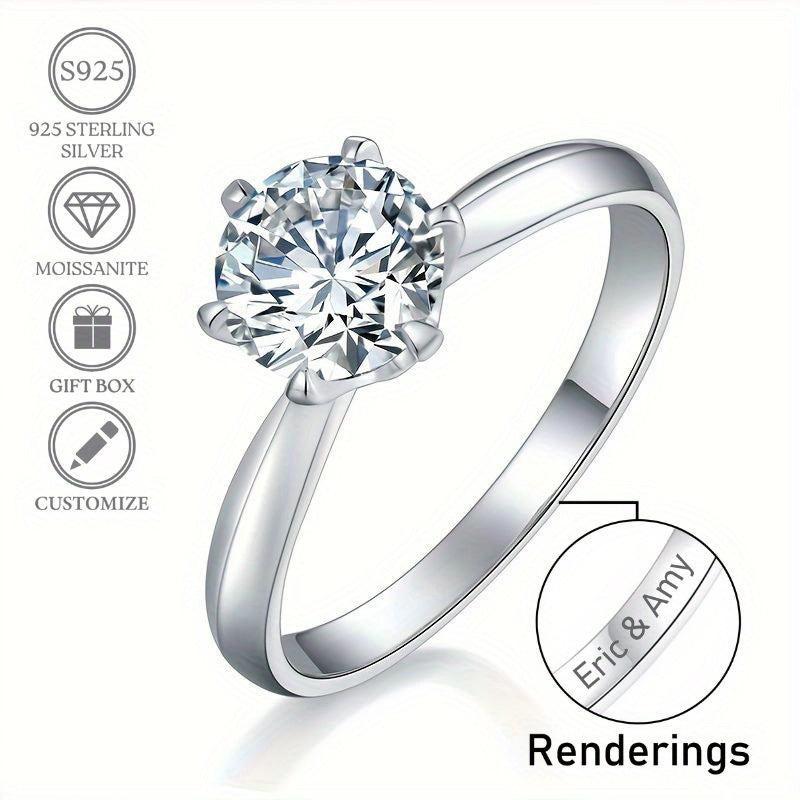 This exquisite wedding ring is made of 925 sterling silver and features an inlaid 0.5-10ct moissanite stone. The delicate six-prong setting adds a touch of elegance to the design.
