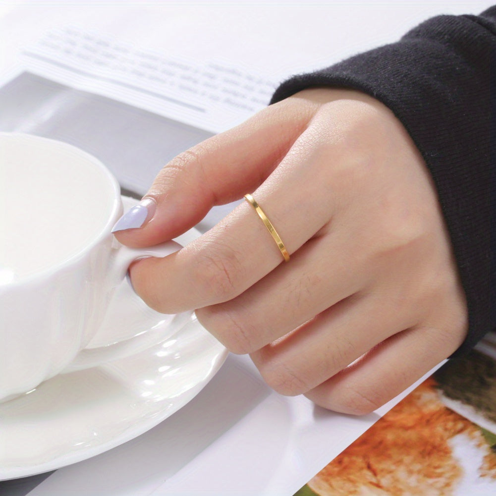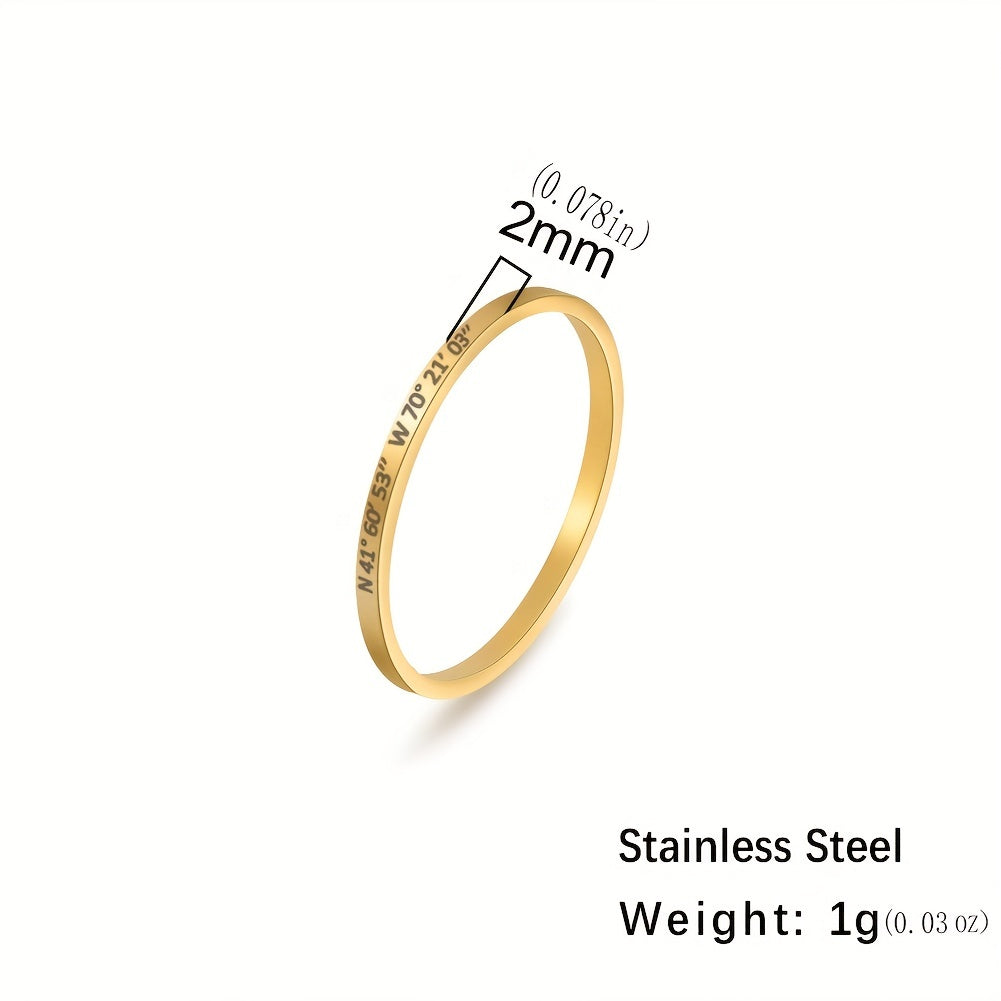 This narrow ring is made of stainless steel with 18k plating, allowing you to choose up to 8 characters for personalized engraving. It is perfect for stacking with other jewelry pieces.