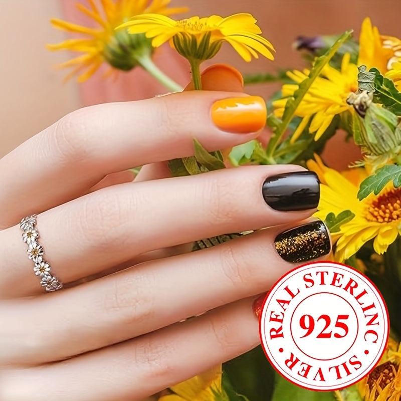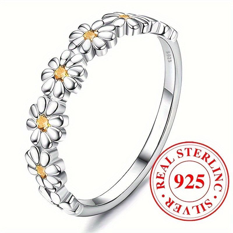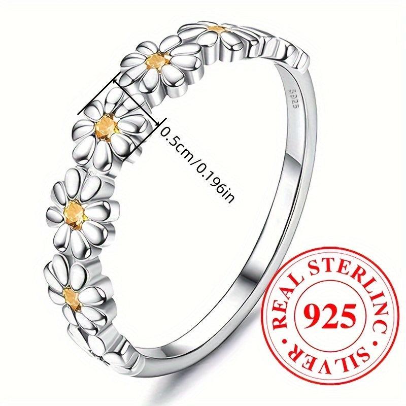 This dainty ring features a daisy flower design with yellow synthetic zirconia stones, perfect for daily wear. Made of high-quality S925 sterling silver, this ring is a stylish and versatile accessory for any occasion.