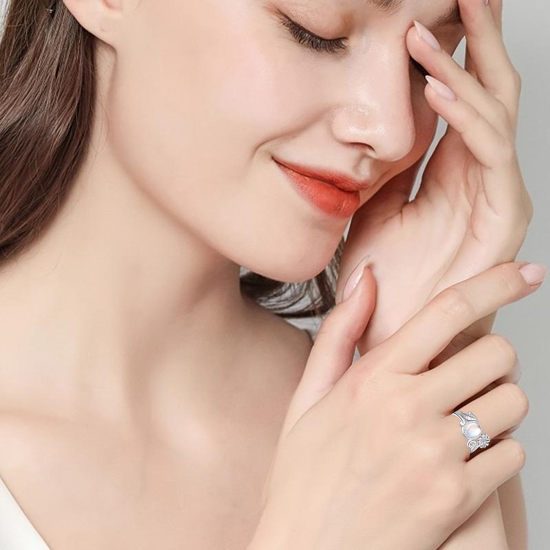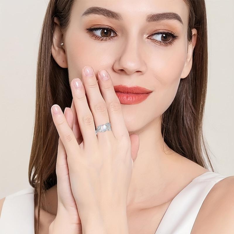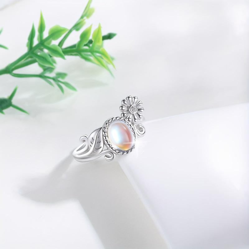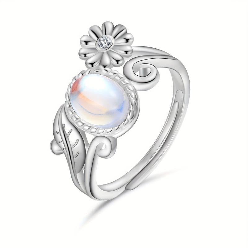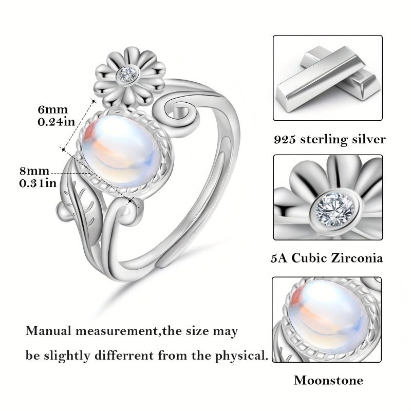 This beautiful daisy moonstone ring is made of 925 sterling silver, featuring a stunning moonstone at the center. The perfect accessory for any occasion, this ring is a lovely gift for women who appreciate unique and elegant jewelry.