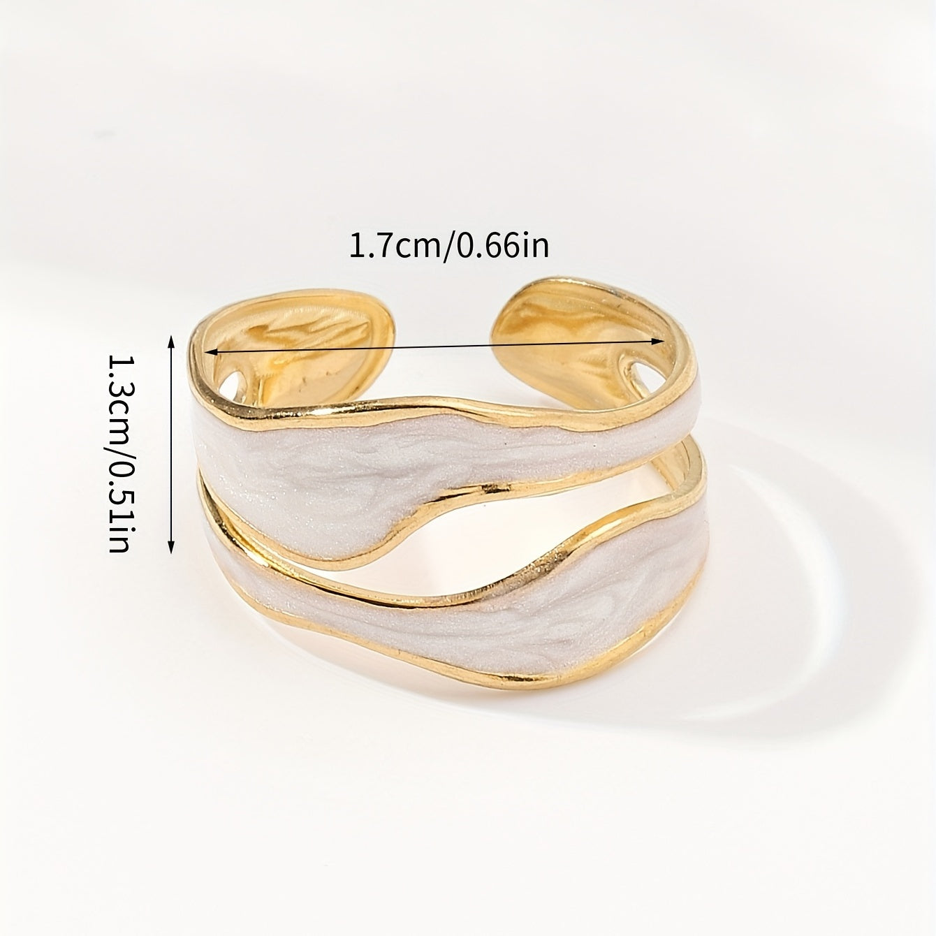 Elegant dark emerald green steel enamel ring with golden plated stainless steel, featuring an irregular opening design that is adjustable for men.