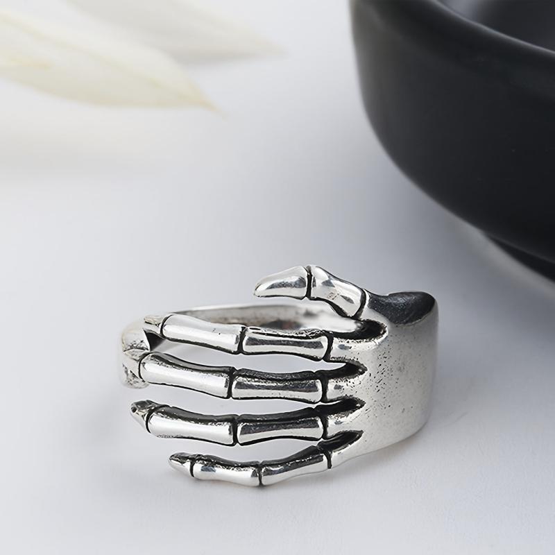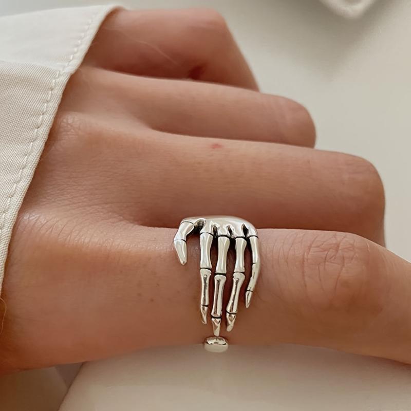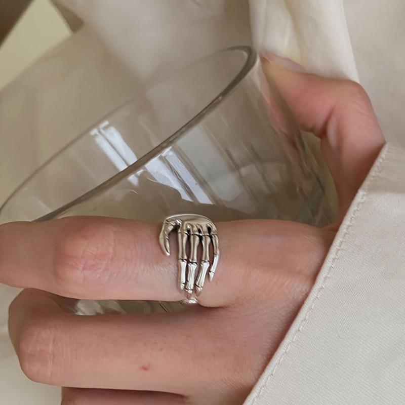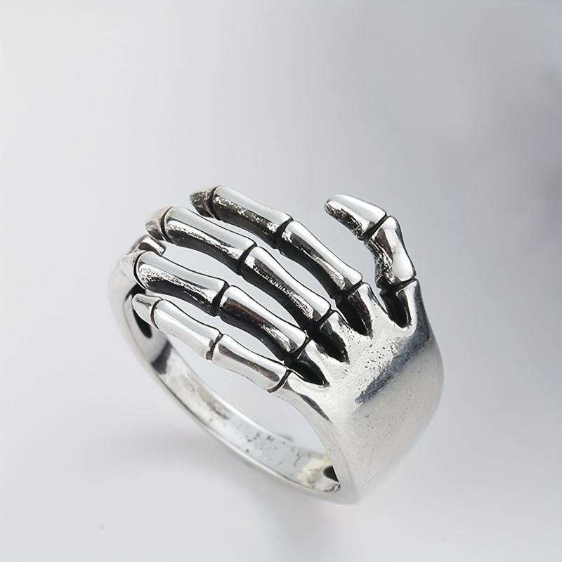 This aged five-finger skull ring is perfect for both men and women who love hip hop style. It's a unique accessory for any occasion.