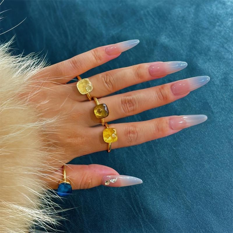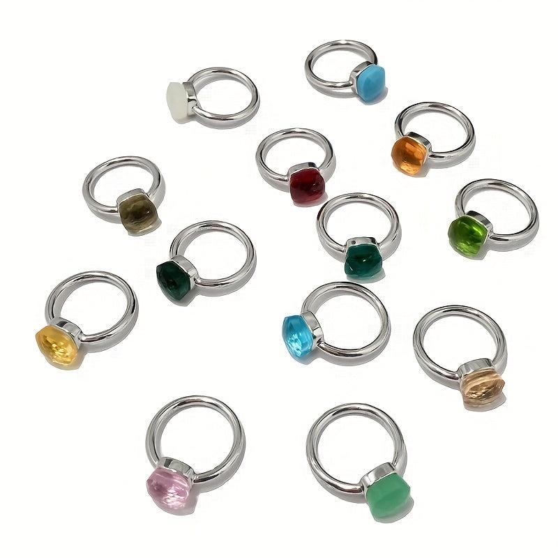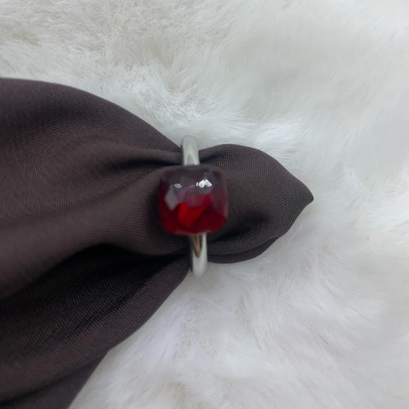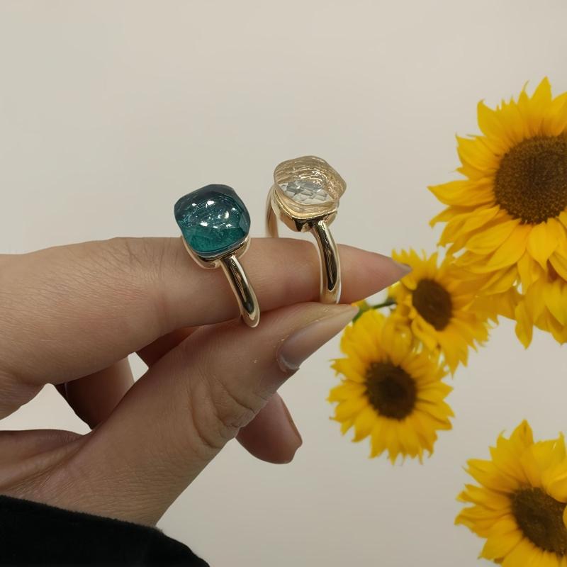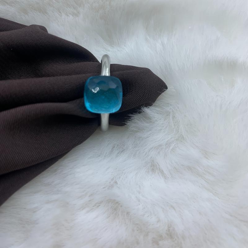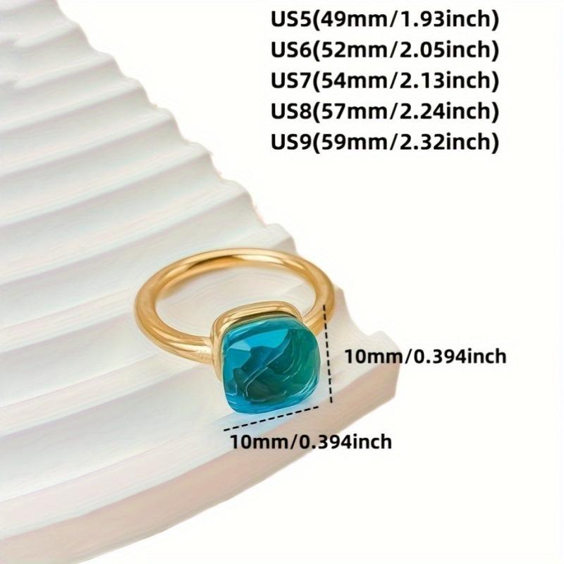 This unique ring features an irregular glass cube design, inspired by Japanese and South Korean fashion trends.