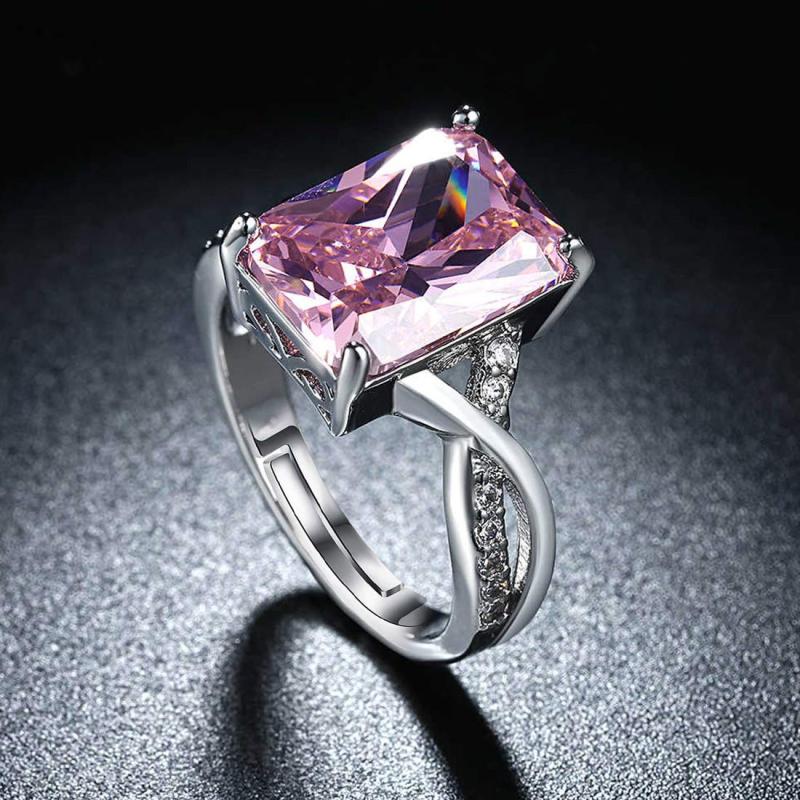 Elegant silver-plated ring with sparkling American diamond detail, adjustable size.