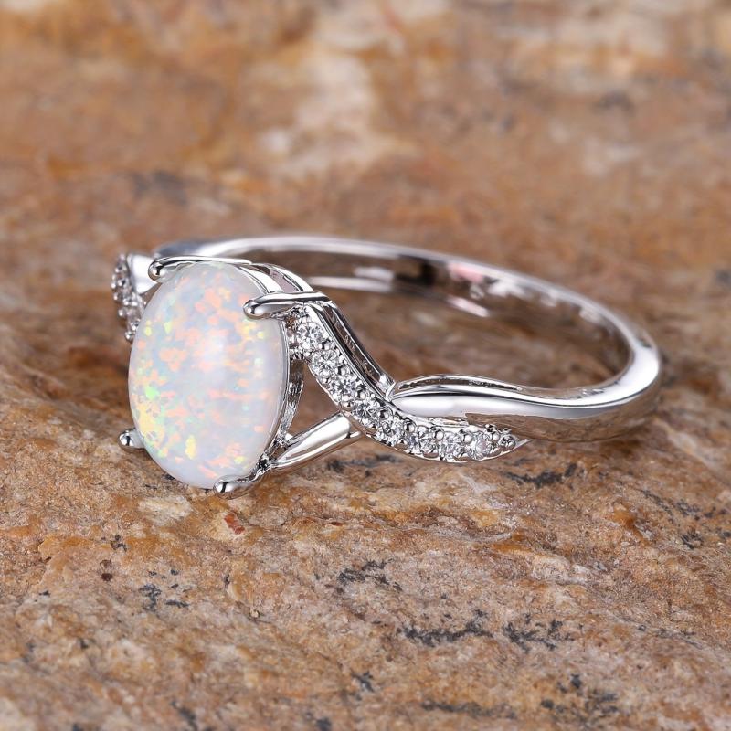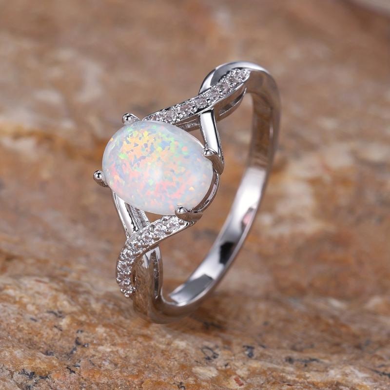 This elegant oval opal ring features a sparkling edge twist design, perfect for adding a touch of glamour to your wedding or party outfit. The curved shape adds a unique and creative element to this beautiful ring.