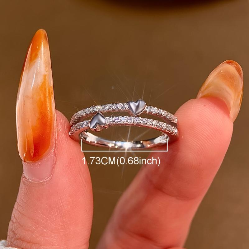 This elegant double heart ring features sparkling zirconia stones set in high-quality 925 sterling silver. Perfect for daily wear or as a thoughtful gift for someone special.