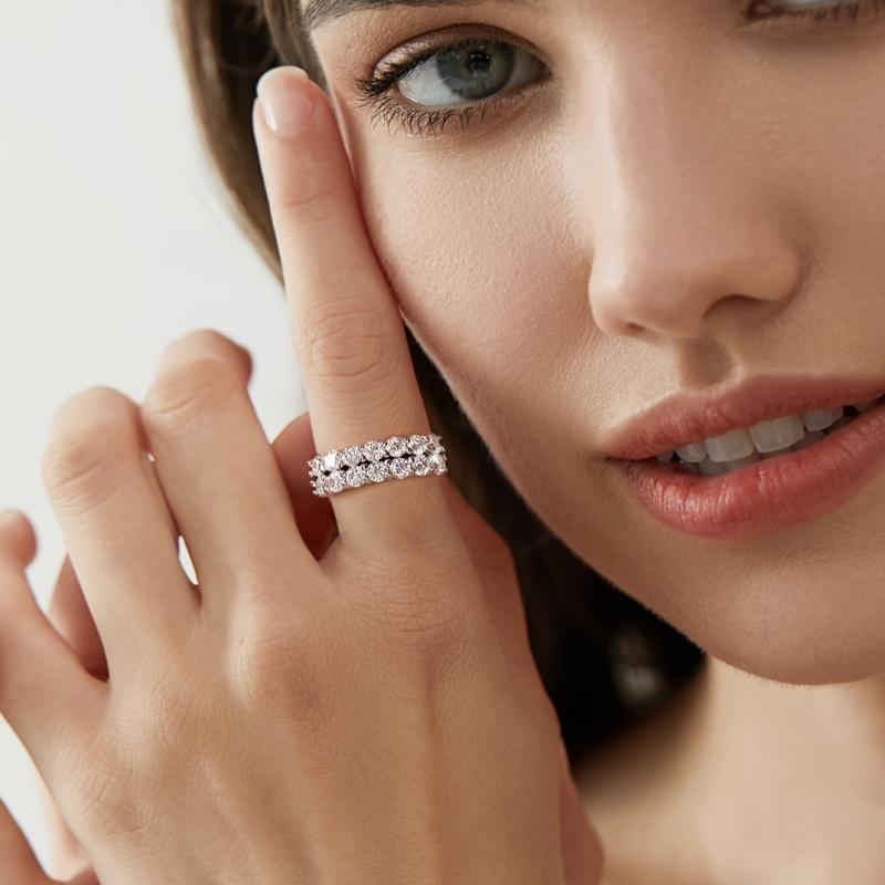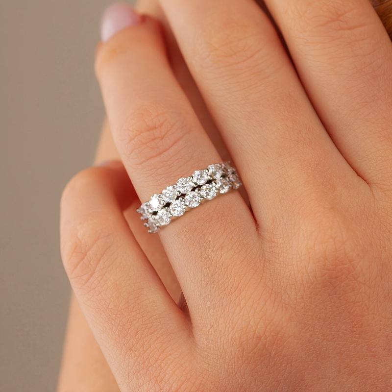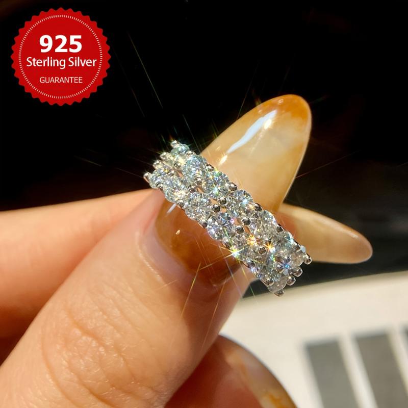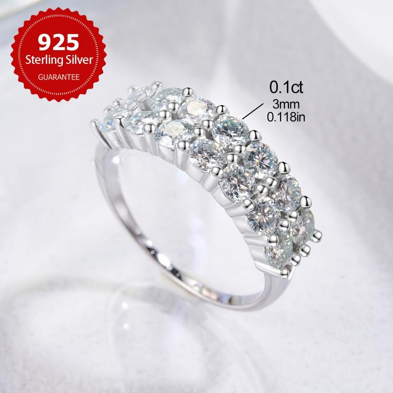This stunning moissanite ring is the perfect choice for an engagement, wedding, anniversary, or Valentine's Day gift. Made from high-quality 925 sterling silver, this ring sparkles with two rows of brilliant moissanite stones. It is a timeless and elegant piece that will be cherished forever.