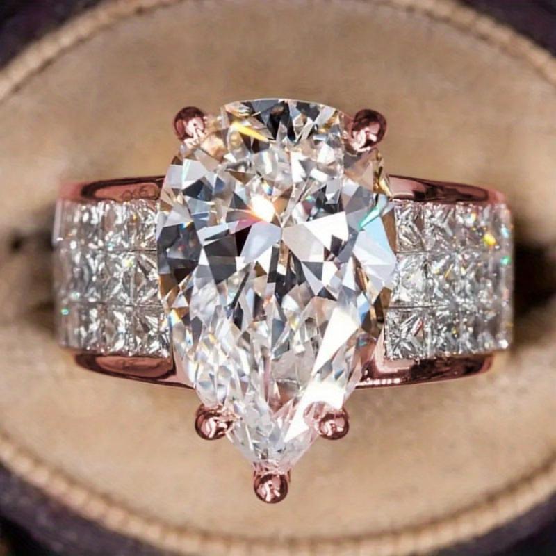 This stunning double-sided synthetic cubic zirconia ring is perfect for engagements, weddings, Valentine's Day, and parties. Made of copper, this jewelry piece is versatile for all seasons.