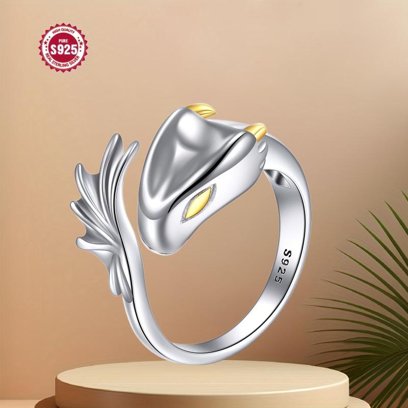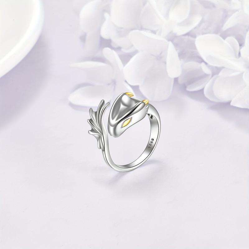 This stunning Dragon Ring is made of 925 sterling silver, featuring an adjustable open design. It is a unique and beautiful piece of jewellery for women.
