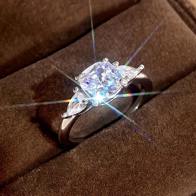 This classic ring features three sparkling zirconia stones set in a stylish 4-prong setting. It's perfect for proposing to your special someone or celebrating a wedding anniversary.