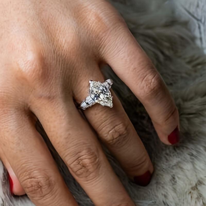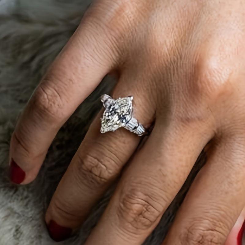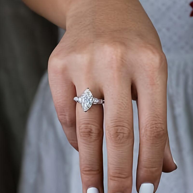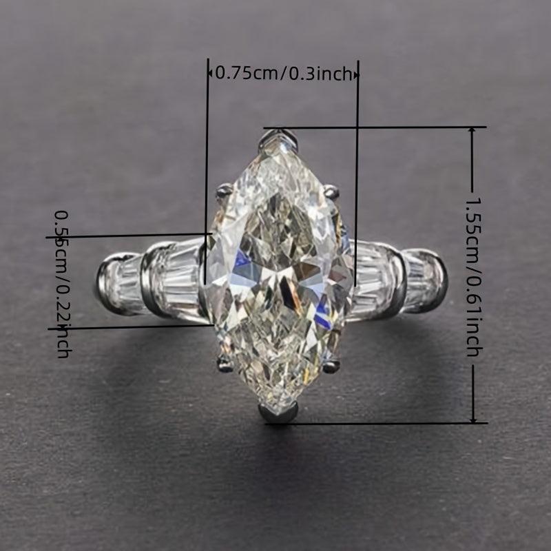 This stunning ring features a 6 prong set marquise zirconia, making it perfect for engagements, weddings, and parties. It's a beautiful and elegant choice for any occasion.