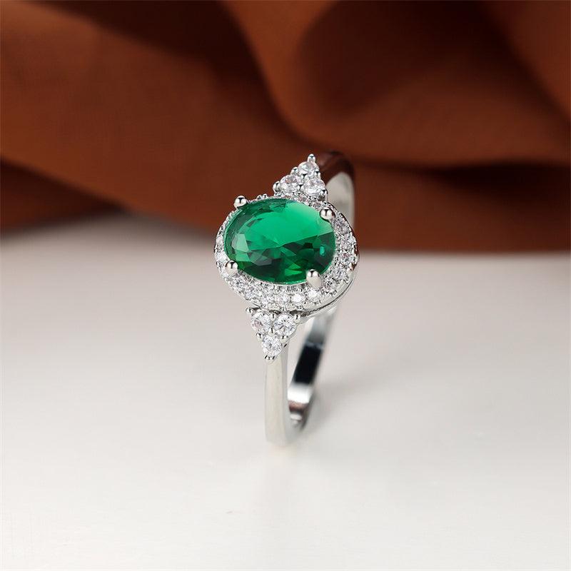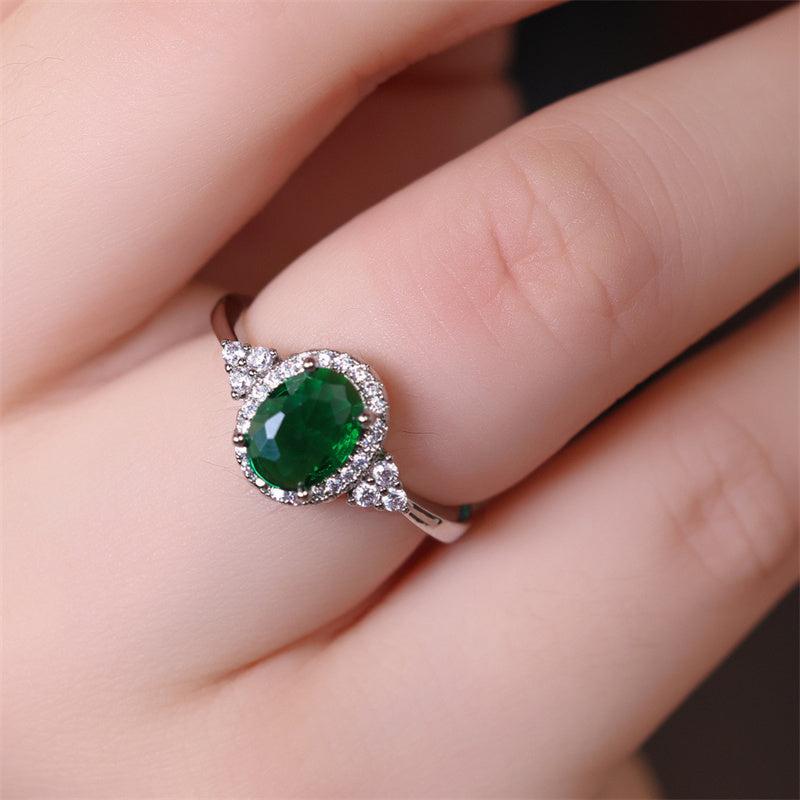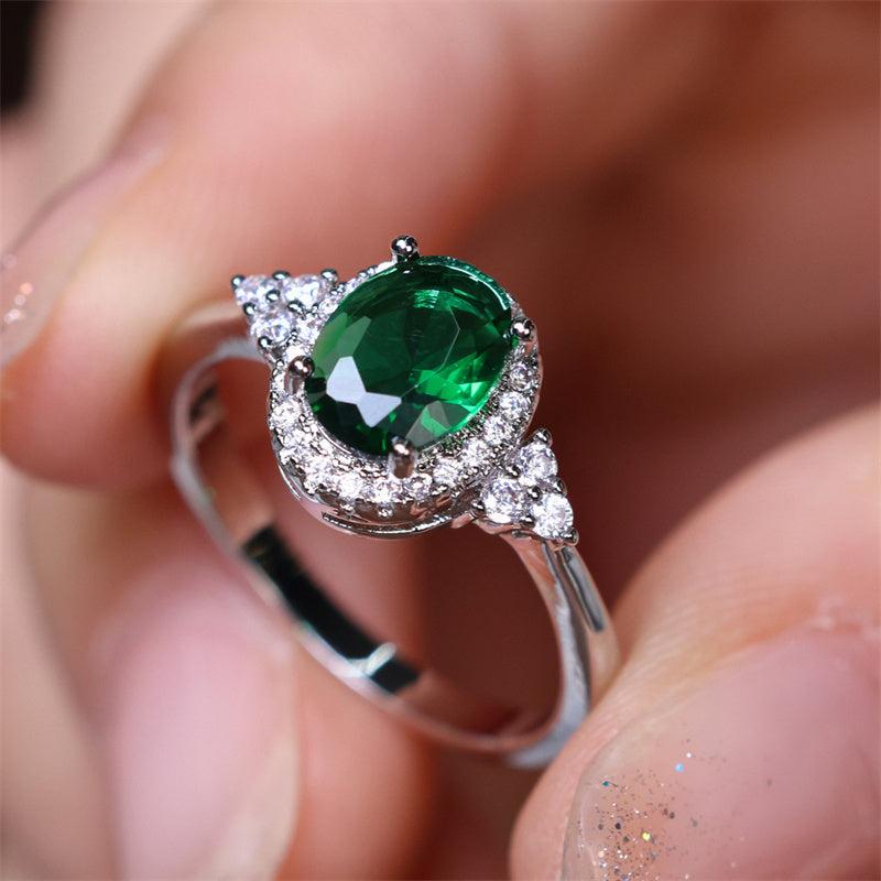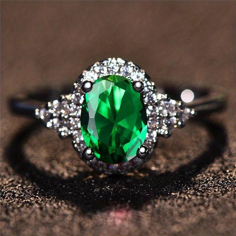 Make a statement with this stunning silvery oval cut green stone ring adorned with CZ claws. Perfect for Valentine's, engagements, and special occasions.