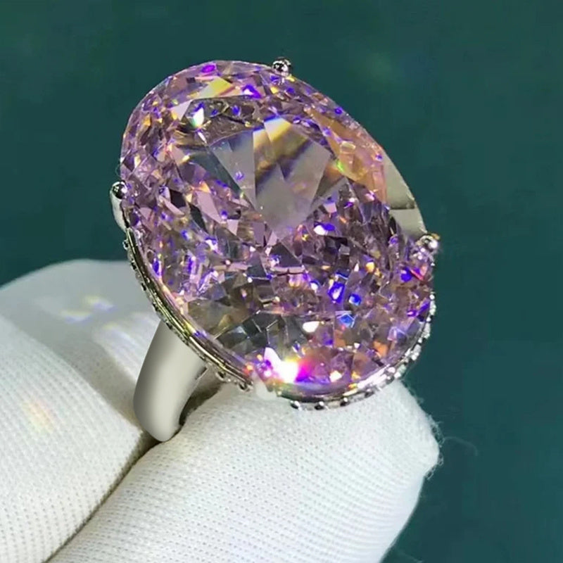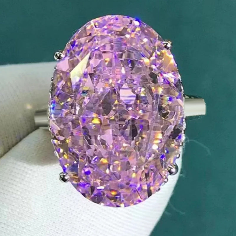 This exquisite ring features an exaggerated egg shape design inlaid with pink zircon, symbolizing elegance and style. Perfect accessory to match your evening party outfits with a touch of boho chic.