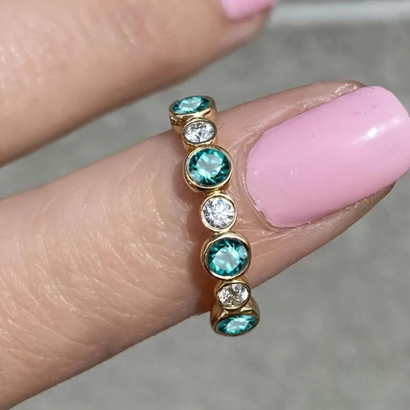 These stunning round zirconia eternity rings are versatile and chic, ideal for engagements, weddings, parties, banquets, vacations, and daily wear.
