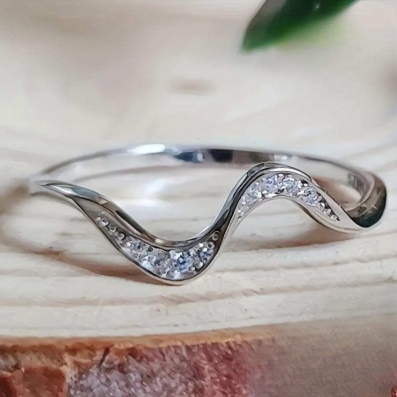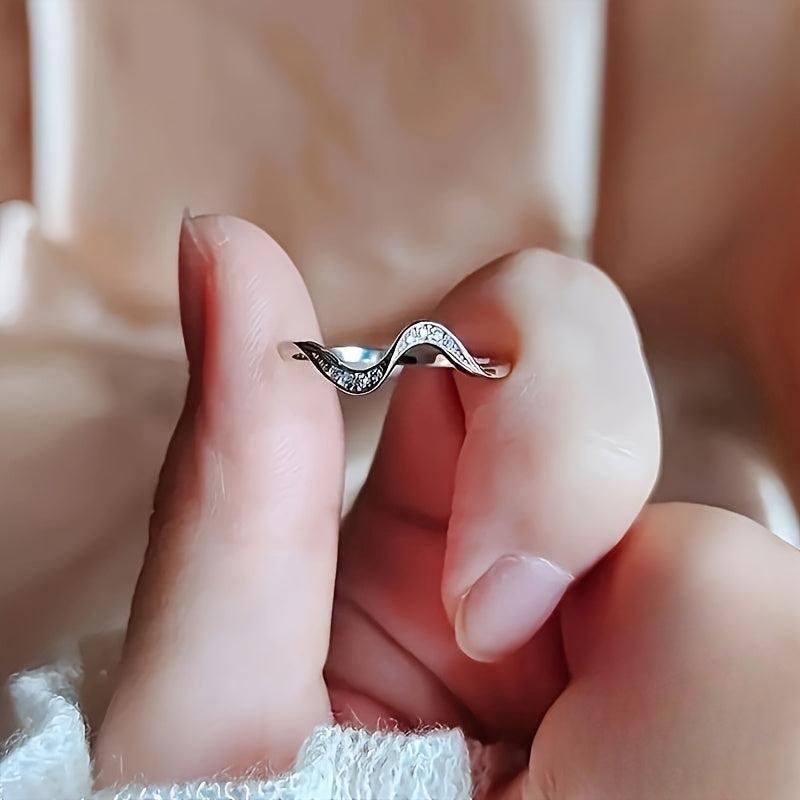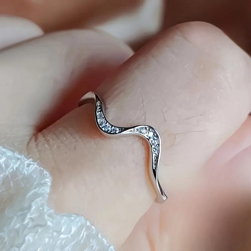 This stunning engagement ring features a wavy motif design with sparkling cubic zirconia stones. Perfect for weddings and daily wear, this ring exudes elegance and charm.