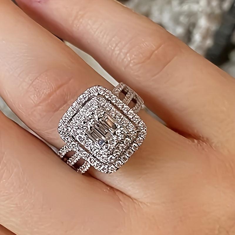 This stunning promise ring set features sparkling zirconia stones, a perfect choice for engagement or wedding. Show your loved one how much they mean to you with this beautiful jewelry gift.