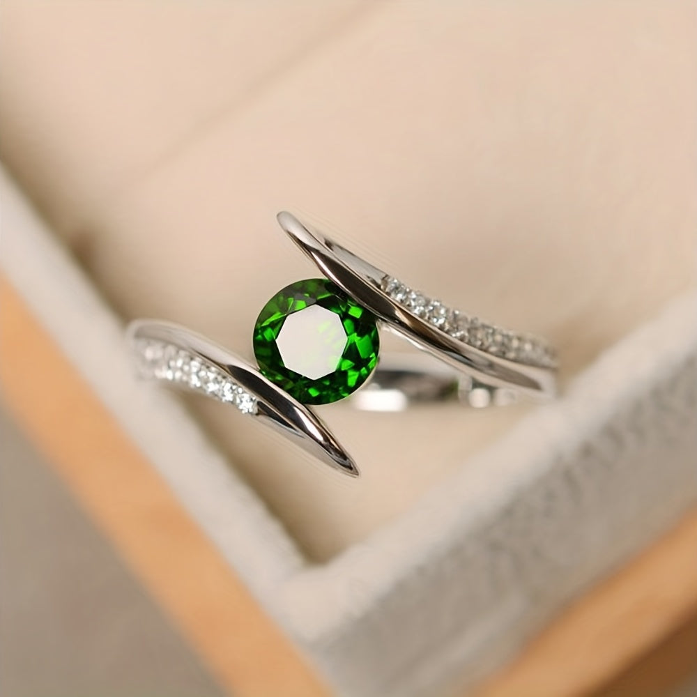 This elegant ring features inlaid emerald zircon and a silky band paved with shining zircons. Perfect for daily outfits or as a dainty party accessory. Also makes a great birthday gift for females.