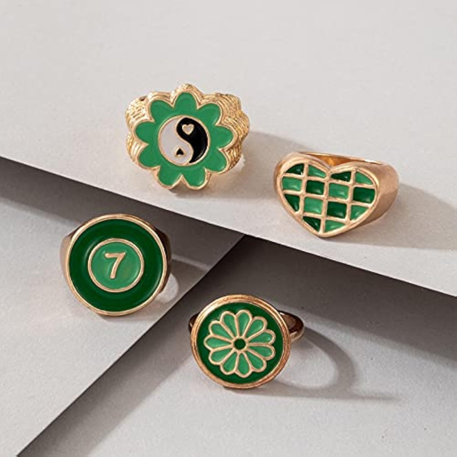 Elegant set of enamelled rings in a combo pack for women, featuring beautiful designs and plated with high-quality materials.