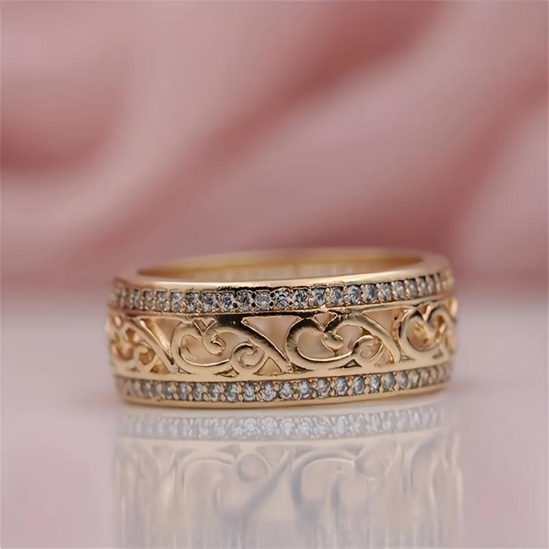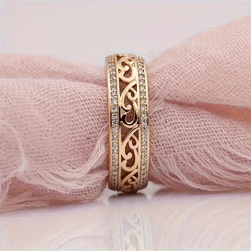 This wide ring features an engraved hollow flower texture with inlaid rhinestones, making it a delicate accessory suitable for daily wear and parties. It's also a great gift idea for friends.