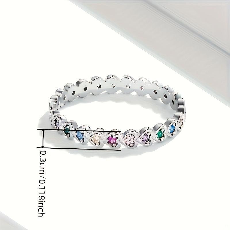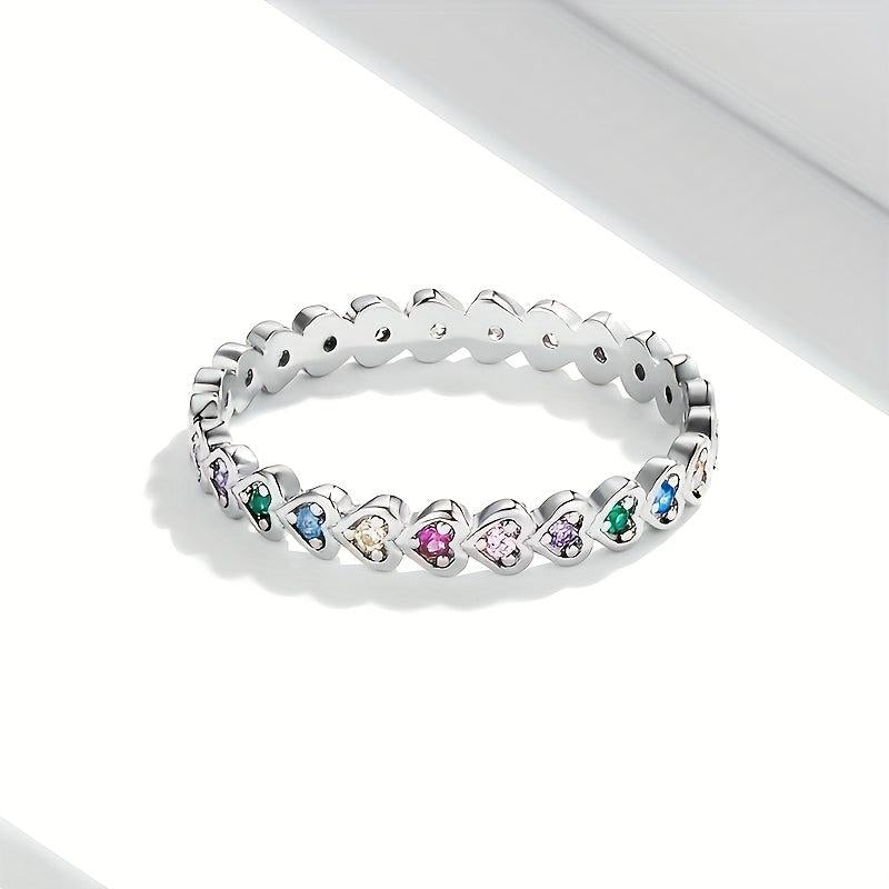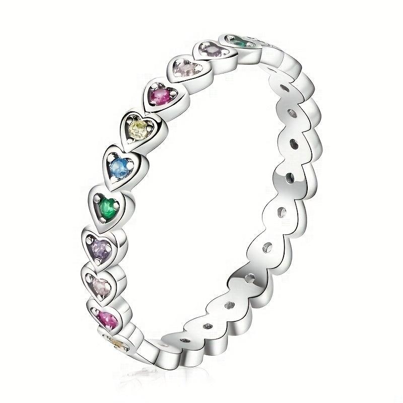 This romantic heart-shaped ring is crafted with multicolor cubic zirconia stones, making it ideal for both Valentine's Day and everyday wear. The ring is durable and suitable for daily occasions.