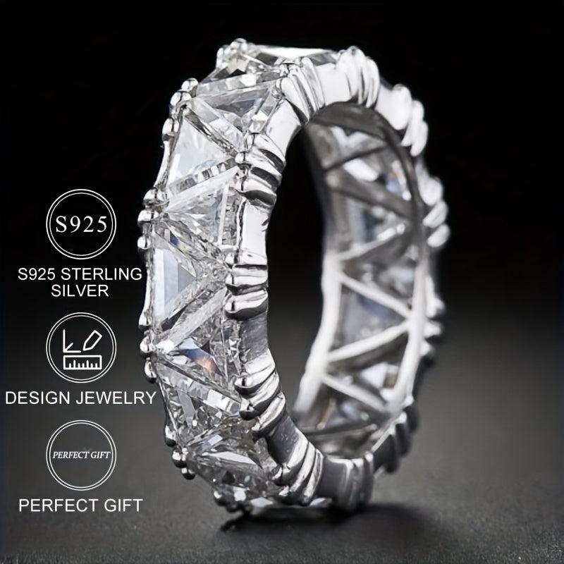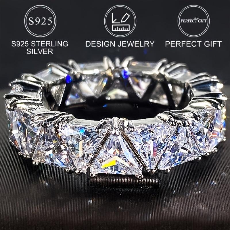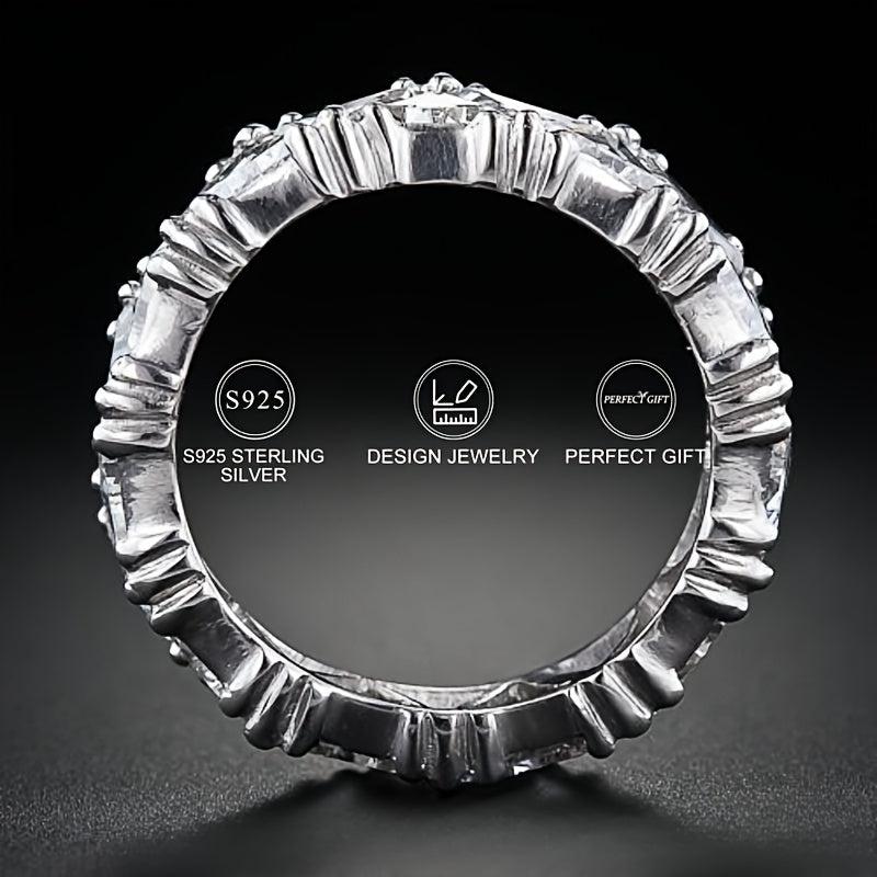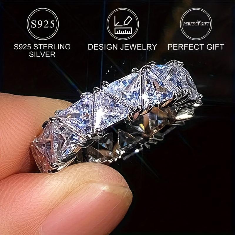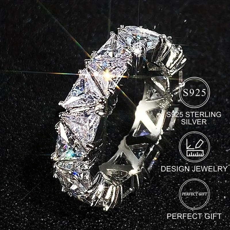 This stunning 925 silver ring features a single row of sparkling zirconia stones, perfect for engagement and wedding occasions.