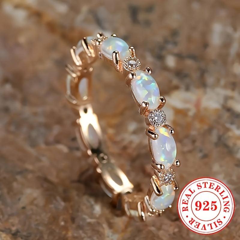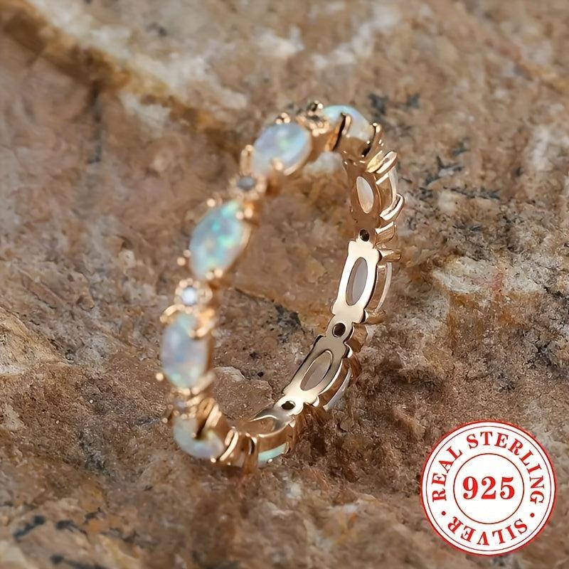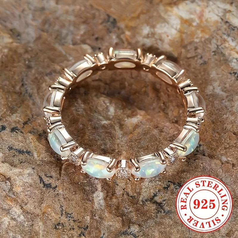 Elegant women's ring made of high-quality S925 sterling silver with a stunning synthetic opal stone. Perfect for engagement, weddings, and daily wear.