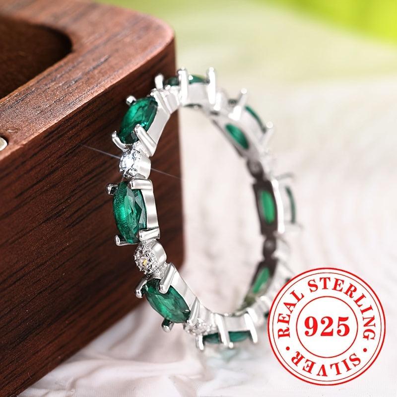 This stunning ring is crafted from high-quality S925 sterling silver with a sparkling synthetic zirconia gemstone. Perfect for weddings and parties.