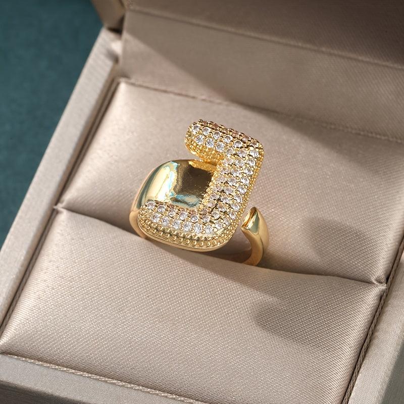 Stylish and adjustable ring featuring synthetic zirconia, perfect for adding a touch of elegance to any outfit.