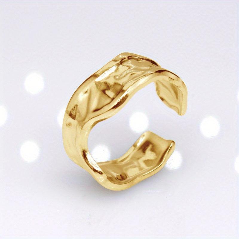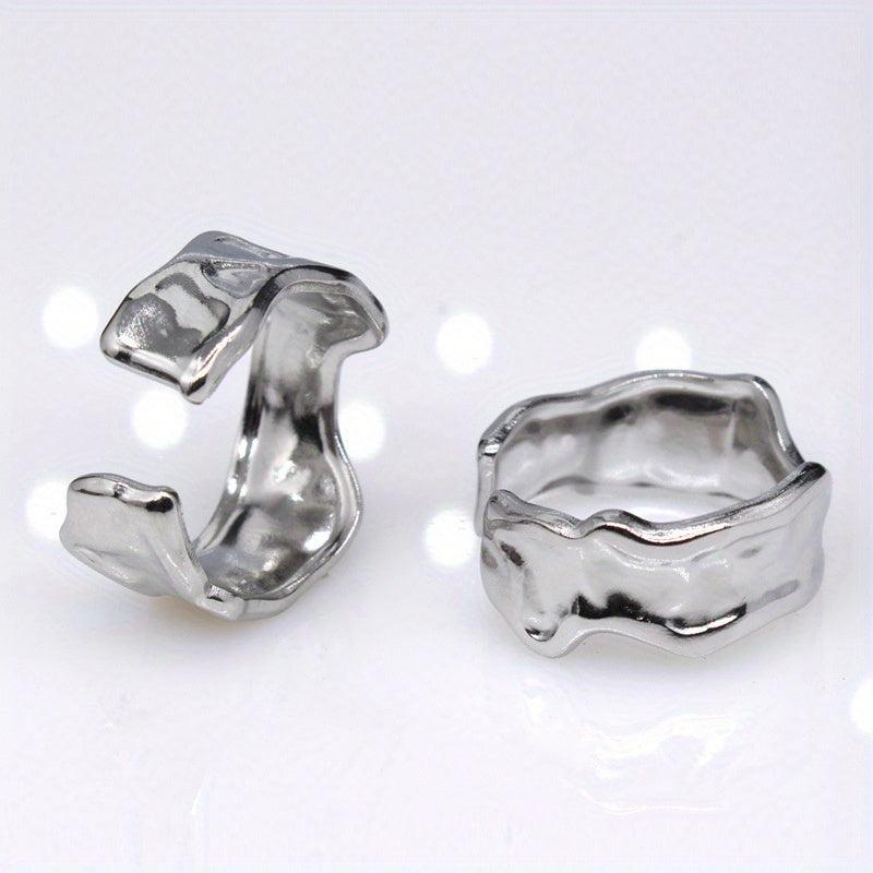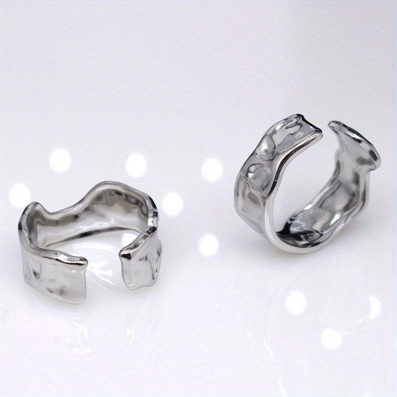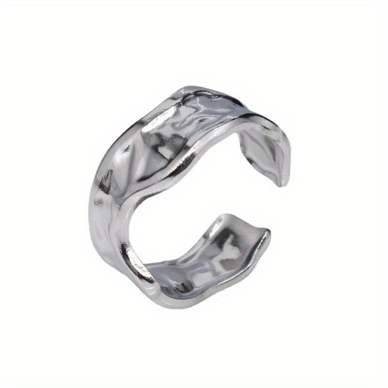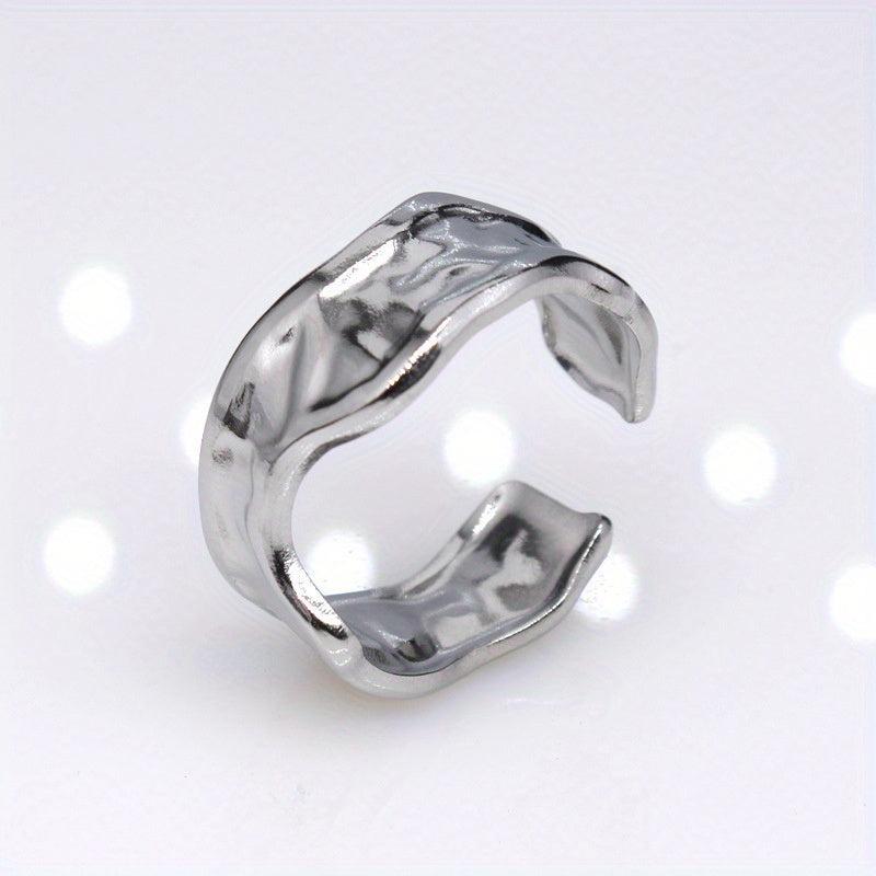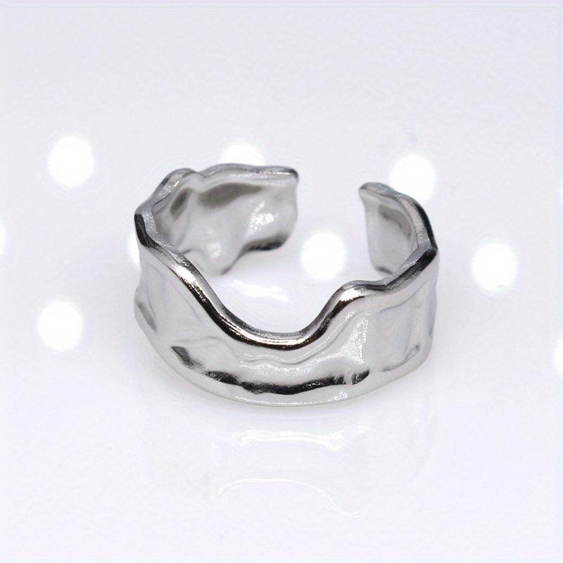 This cross border ring features a pleated geometric design made of durable titanium steel. The ring has an adjustable opening suitable for both men and women.