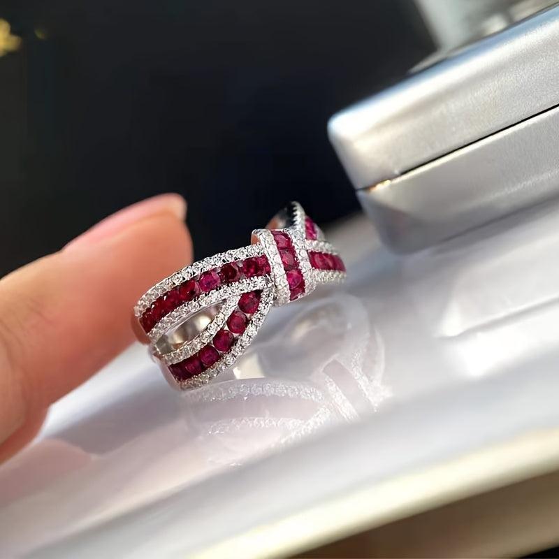 Elevate your style with this stunning wide band ring featuring a bow design and synthetic zirconia stones in dual colors. Perfect for parties and everyday wear, this ring makes a great gift for any fashion-forward individual.