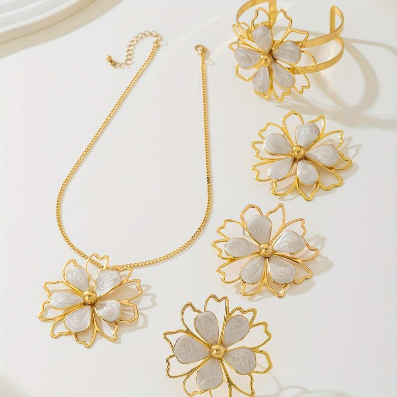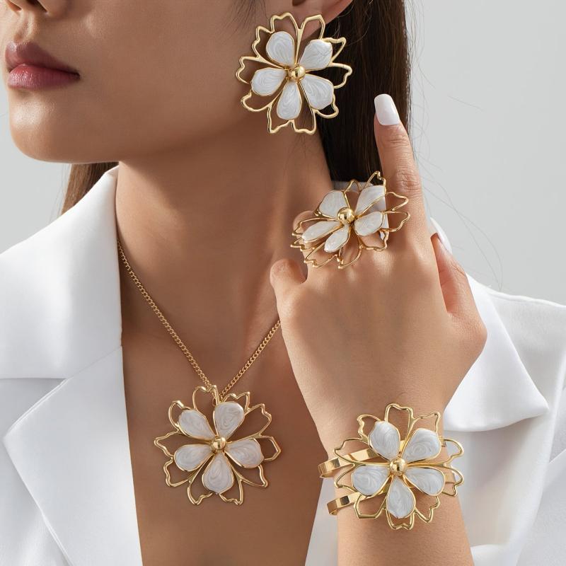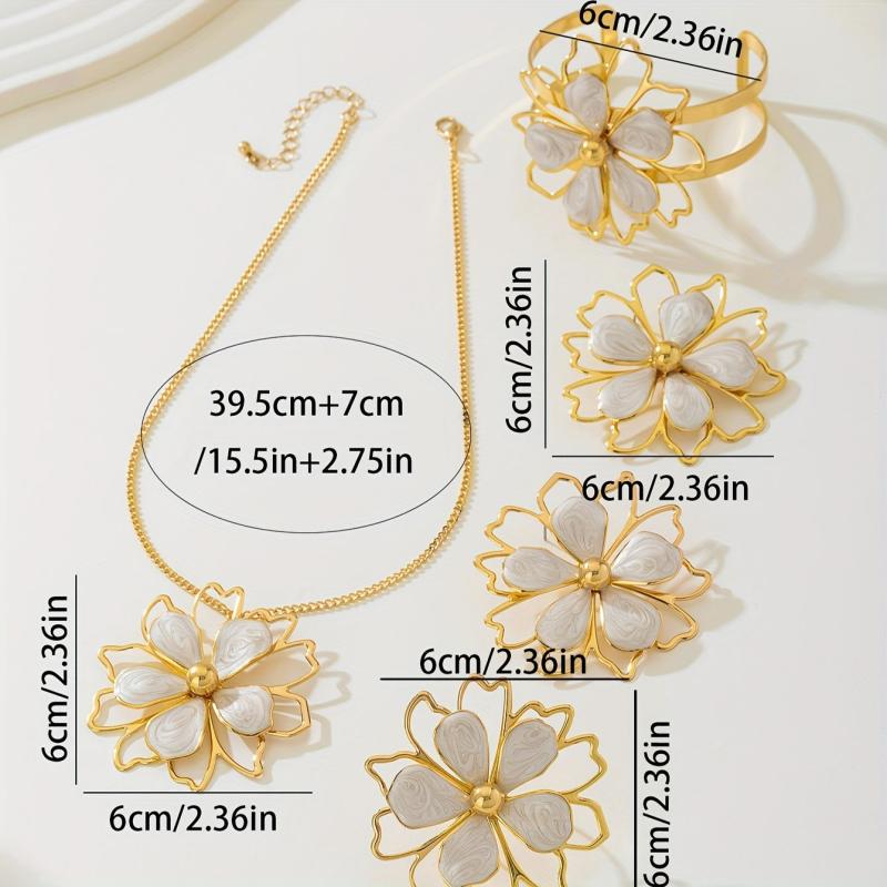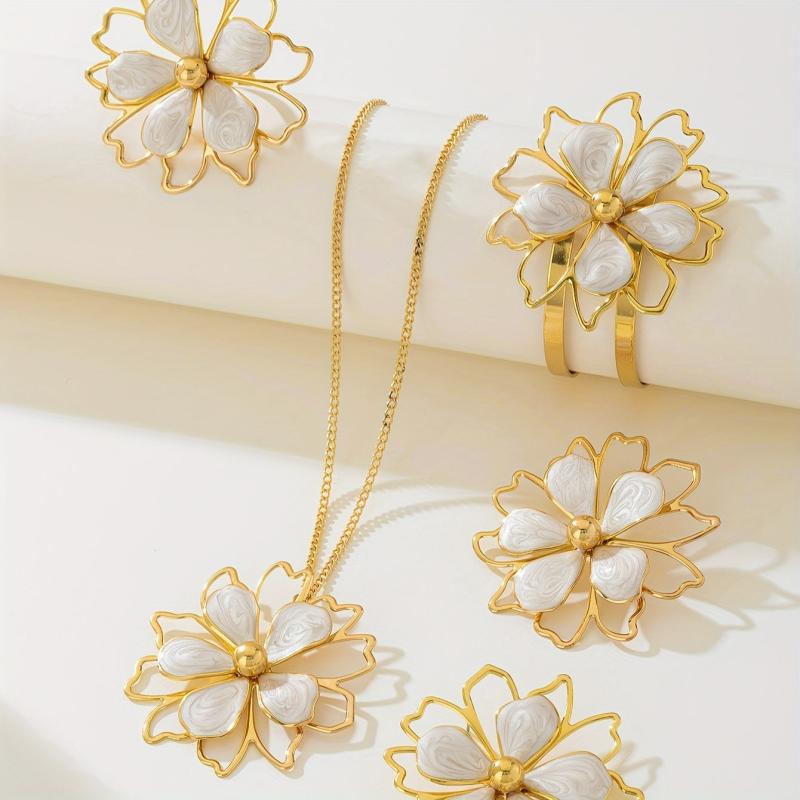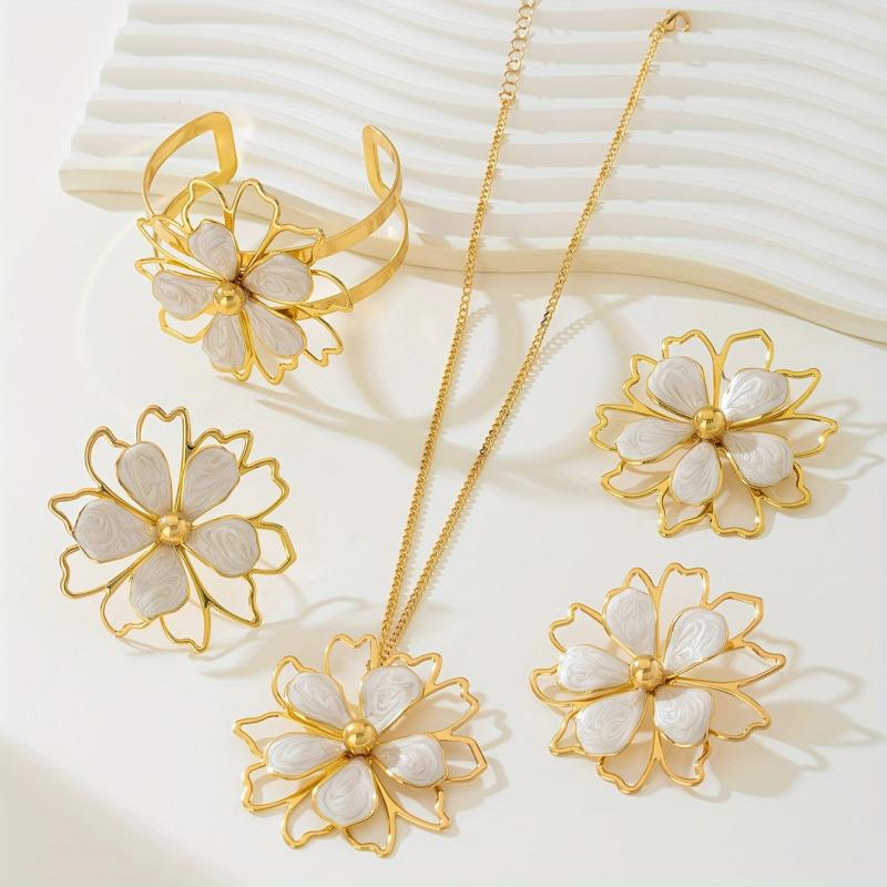 Elevate your style with this chic bracelet set featuring irregular hollow lines and five flower motifs. Made with high-end materials, this versatile jewelry piece adds a touch of elegance to any outfit.