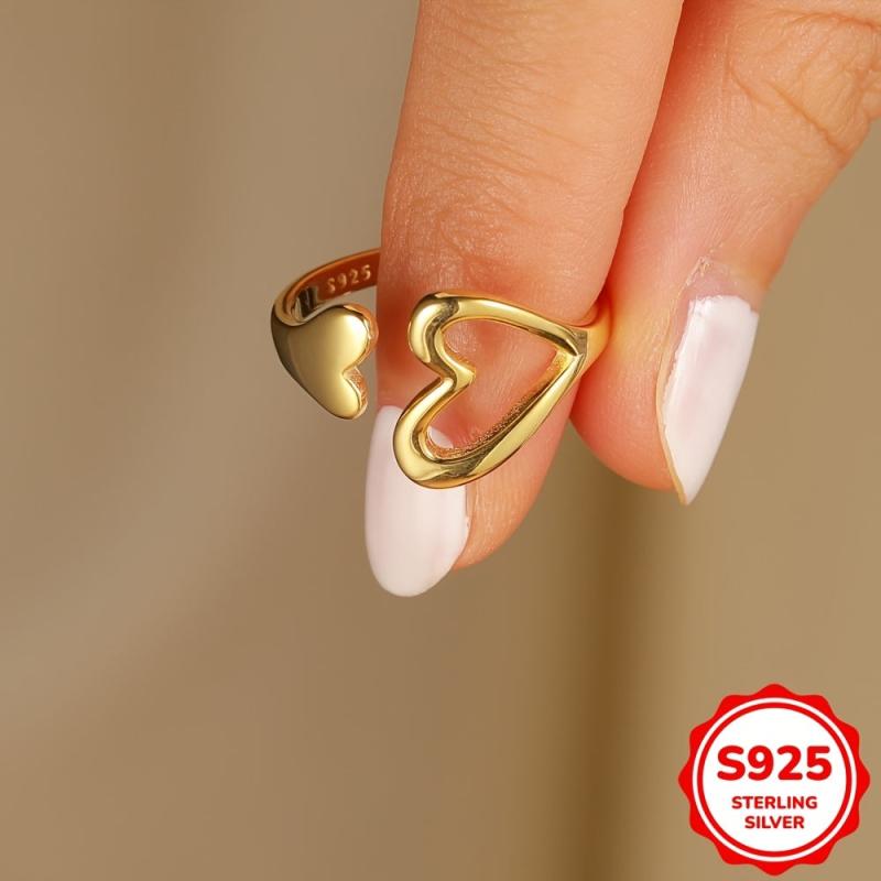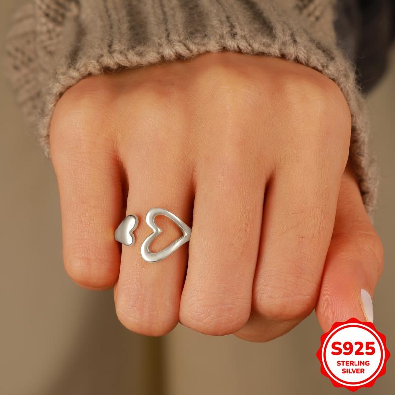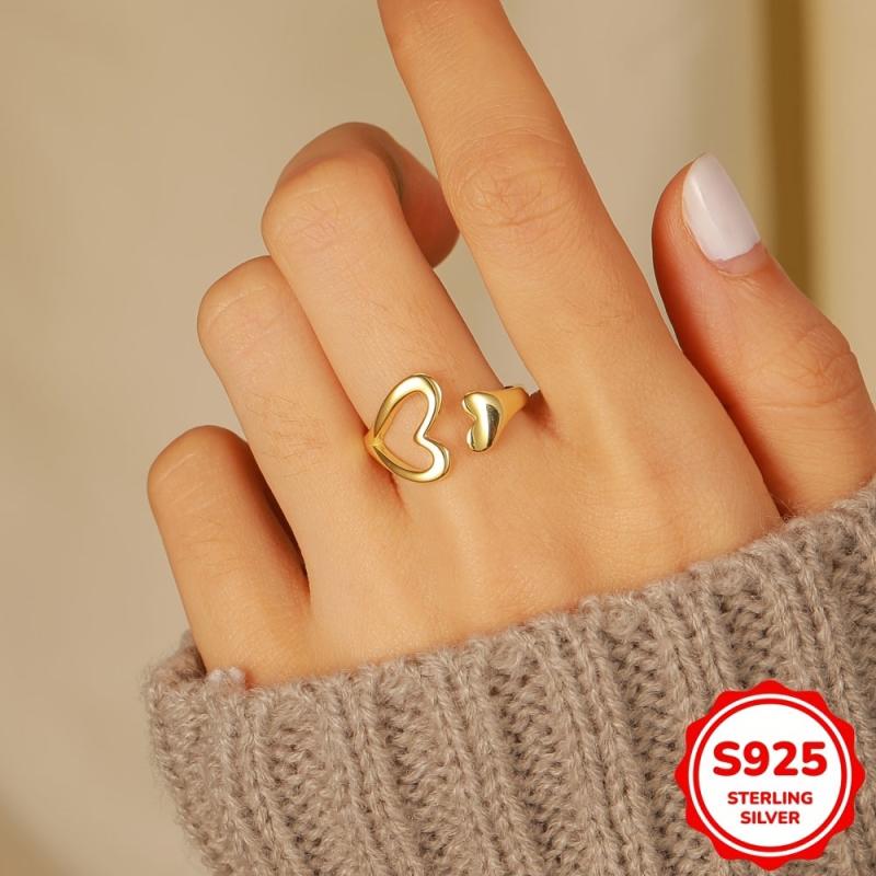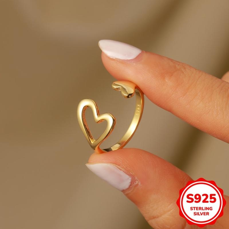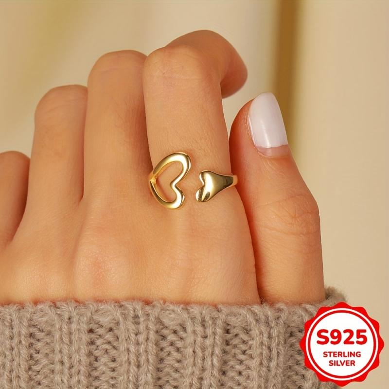 Elegant and minimalist S925 pure silver ring featuring a hollow heart design. Perfect accessory for daily wear, adding a touch of sophistication to any outfit.