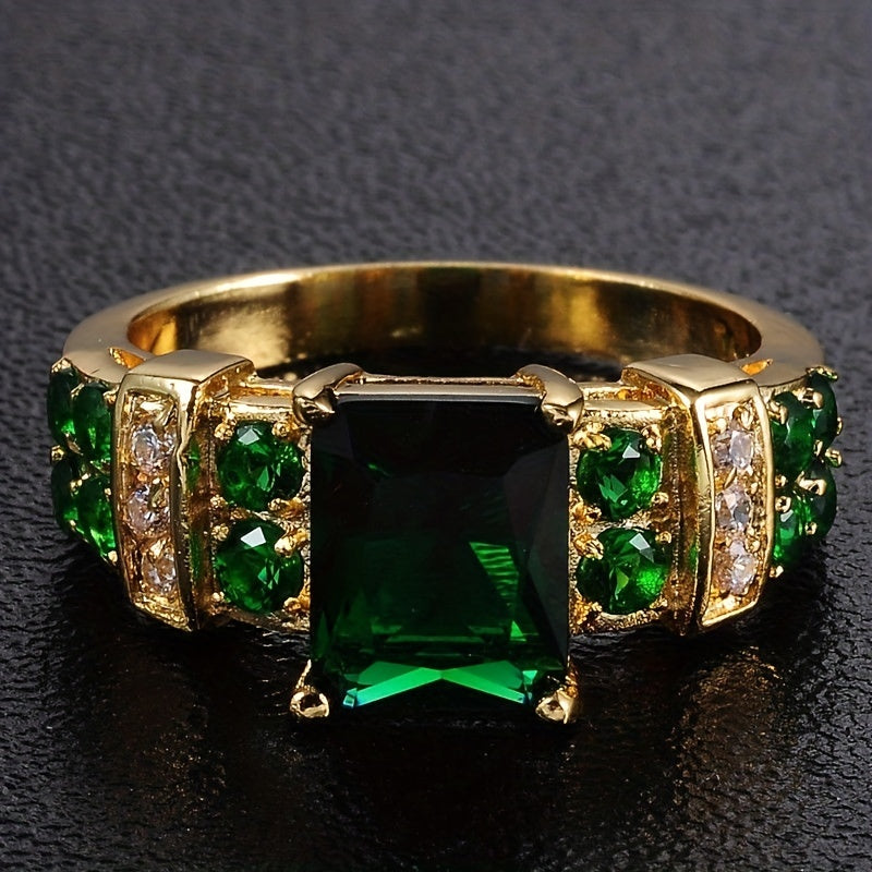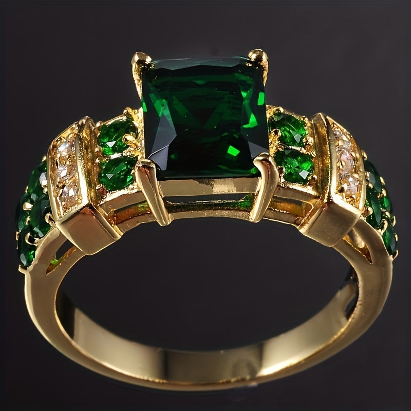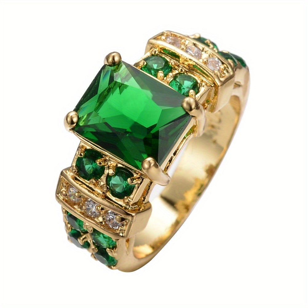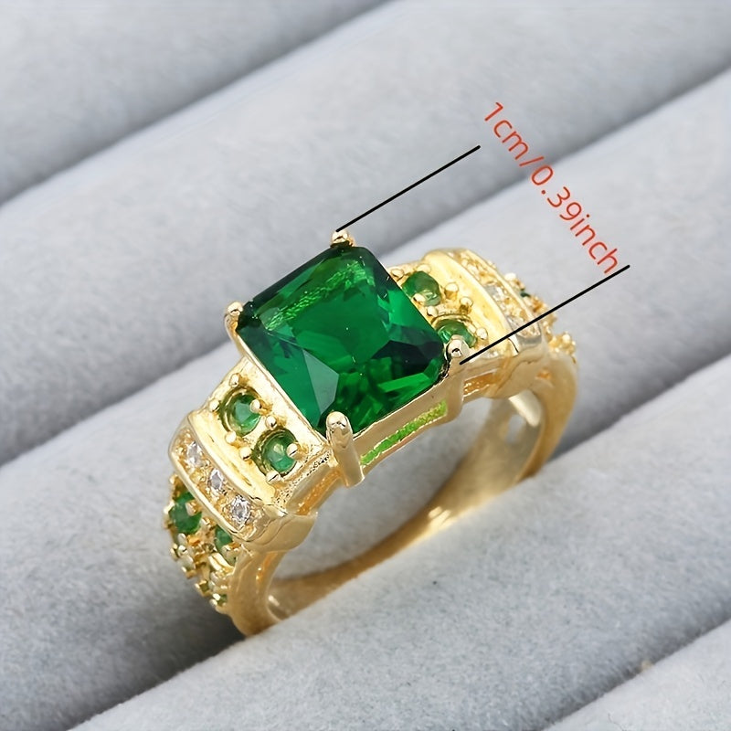 Add a touch of elegance to your look with this faux emerald rhinestone golden ring. Perfect for both men and women, this costume jewelry piece exudes sophistication and style.