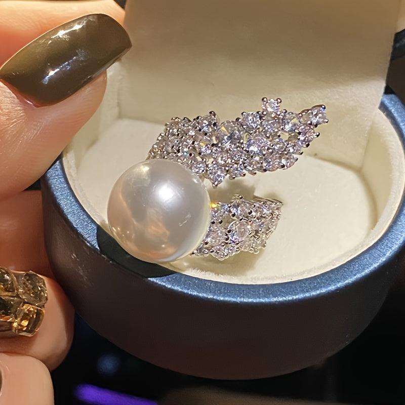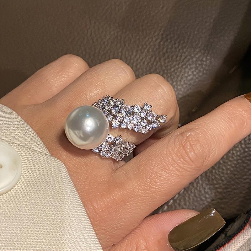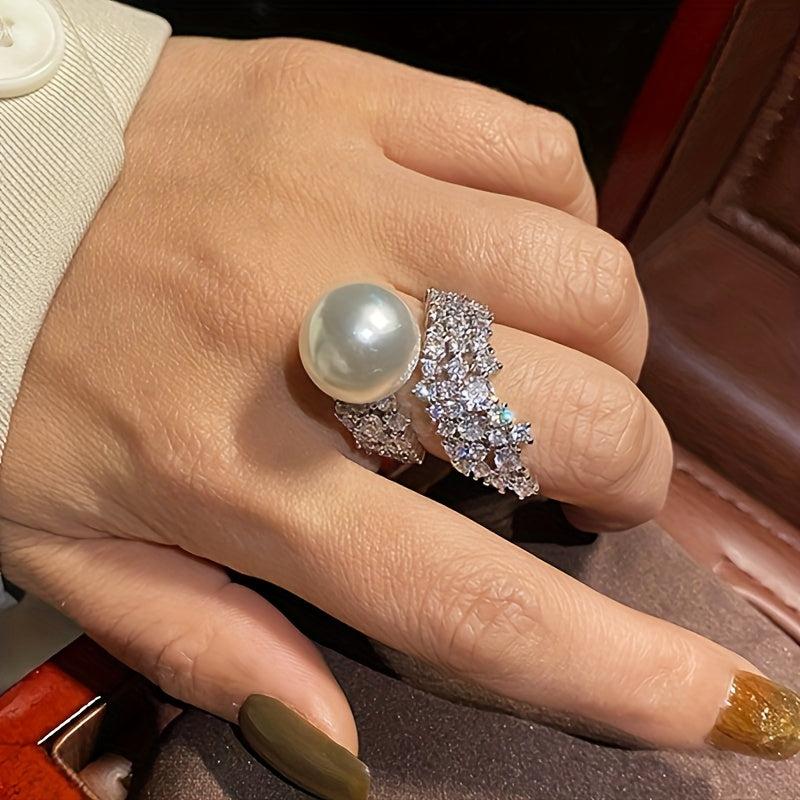 This elegant ring features faux pearls and sparkling crystals, perfect for weddings, parties, and anniversaries. Its baroque style adds a touch of luxury to any outfit.