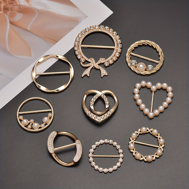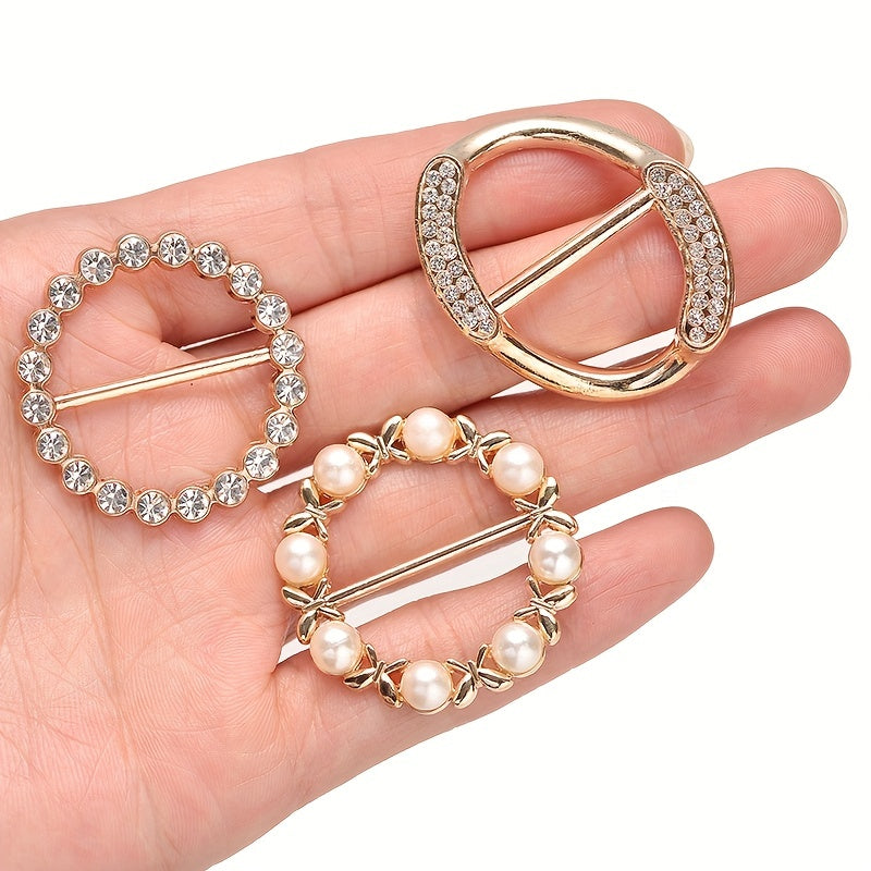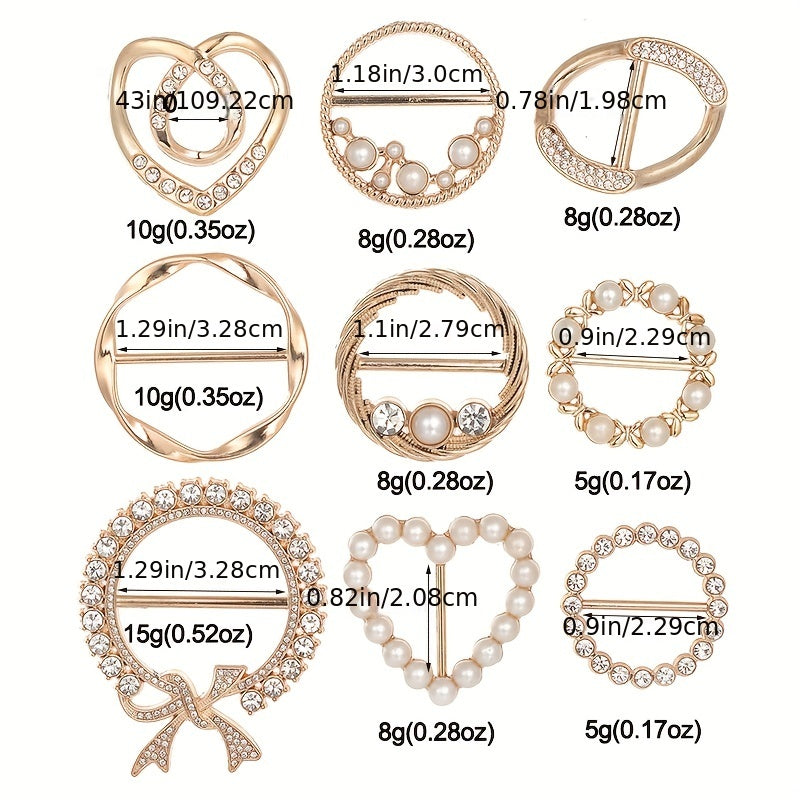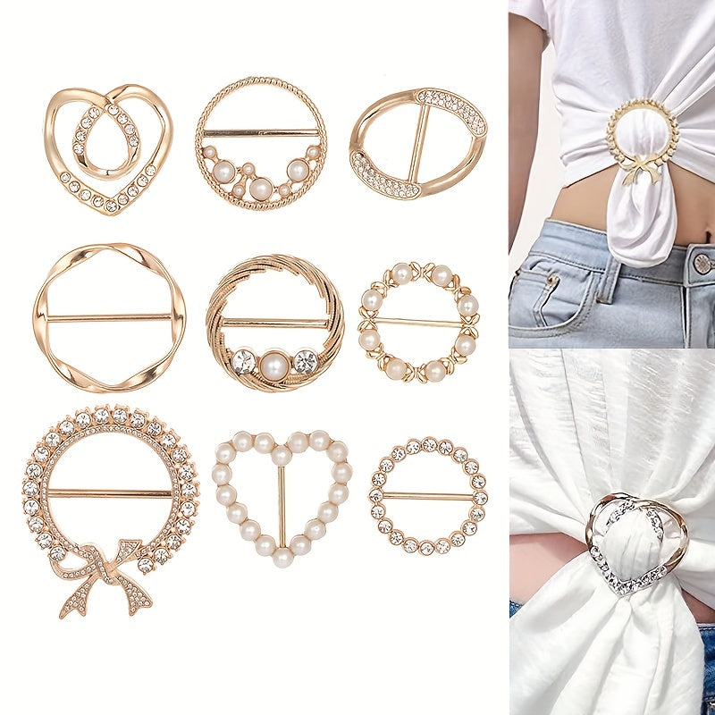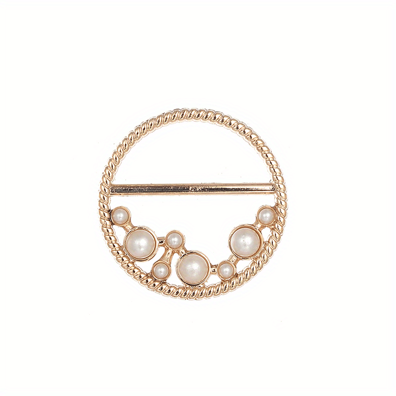 This scarf buckle ring features a hollow out design with various shapes and inlaid faux pearls, perfect for adding a touch of elegance to your scarf.