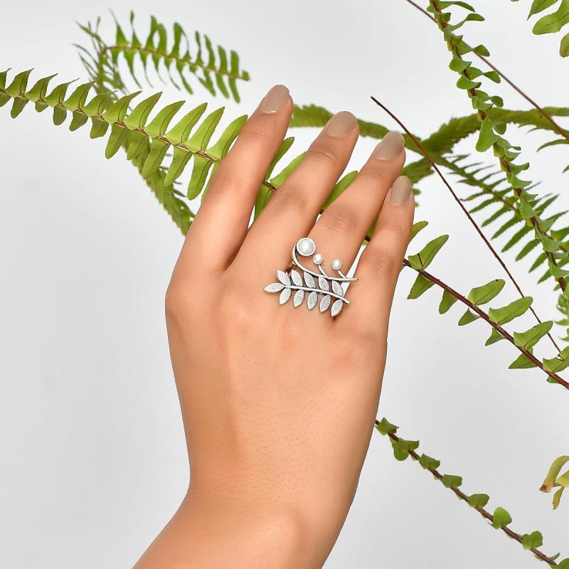 Adorn your fingers with the beauty of nature. This exquisite ring features a dew drop design accented by delicate fern leaves. A perfect accessory for nature lovers.