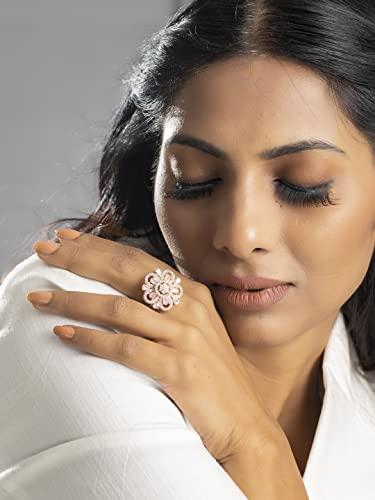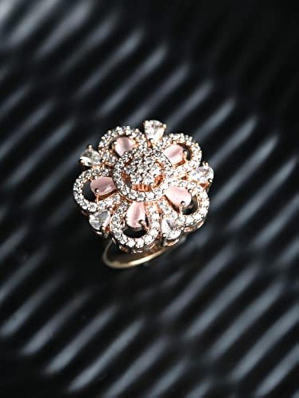Elegant rose ring with sparkling American diamonds, perfect for adding a touch of glamour to any outfit.