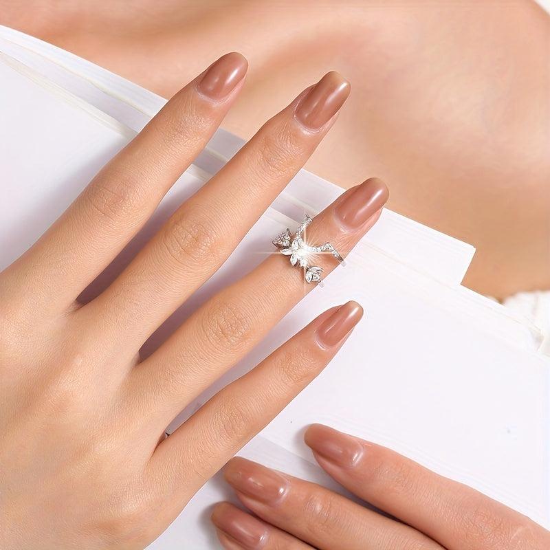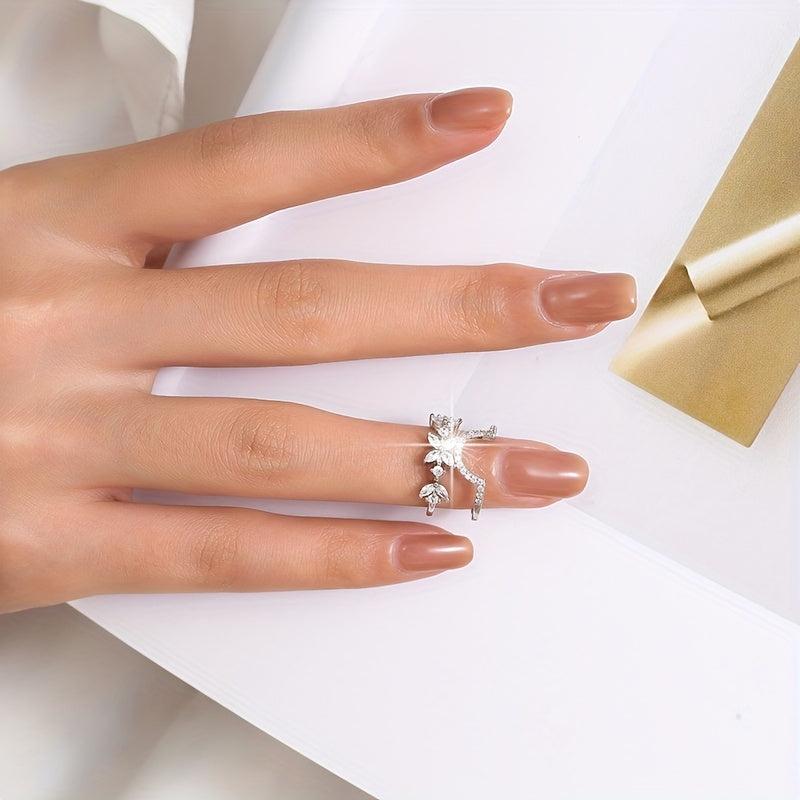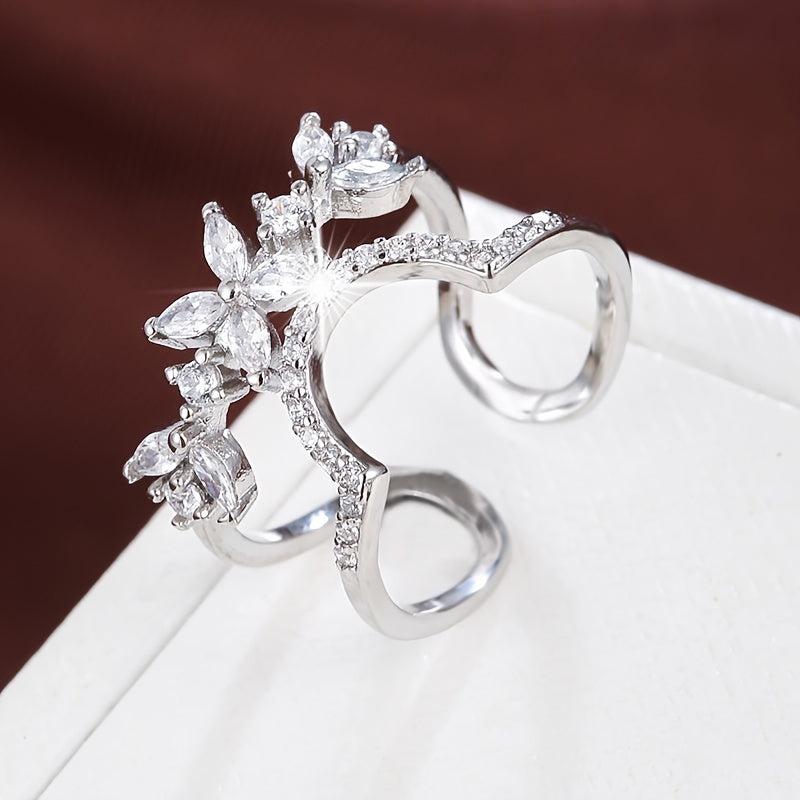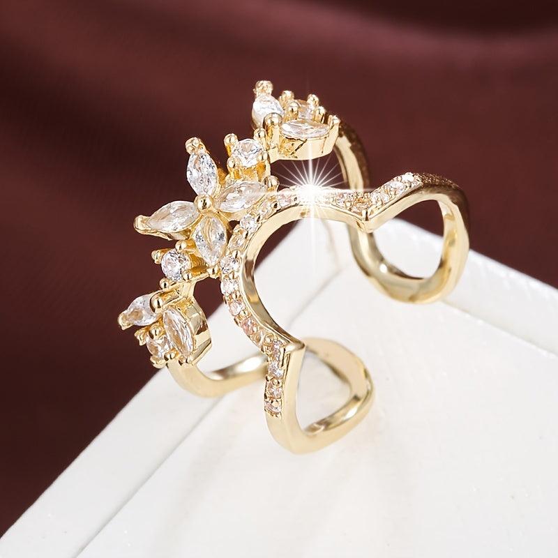 This elegant floral copper ring features a sparkling synthetic cubic zirconia stone. Perfect for daily wear or gifting on special occasions.