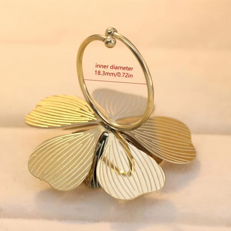 Floral Double Layer Ring Adjustable Band for Women -18K Plated Stainless Steel