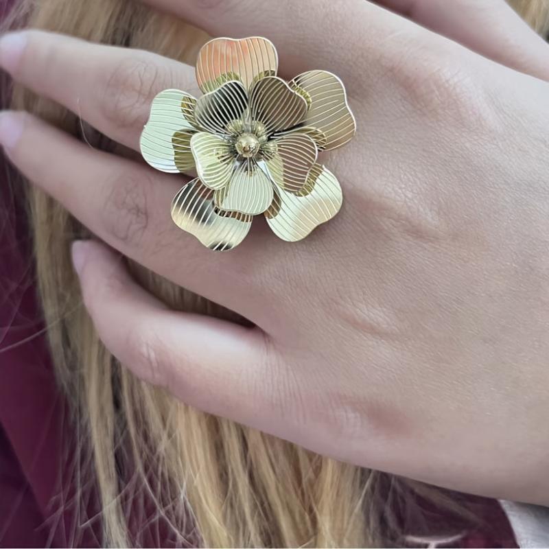 Elevate your style with this stunning double layer floral ring. Made of durable stainless steel with 18K gold plating, it is perfect for both casual wear and special occasions.
