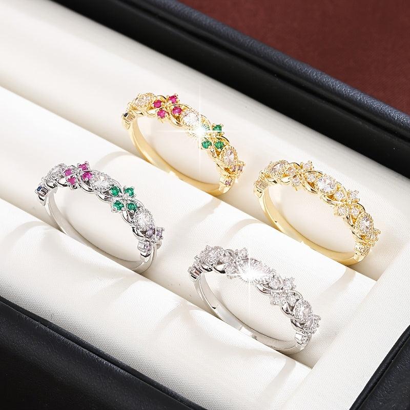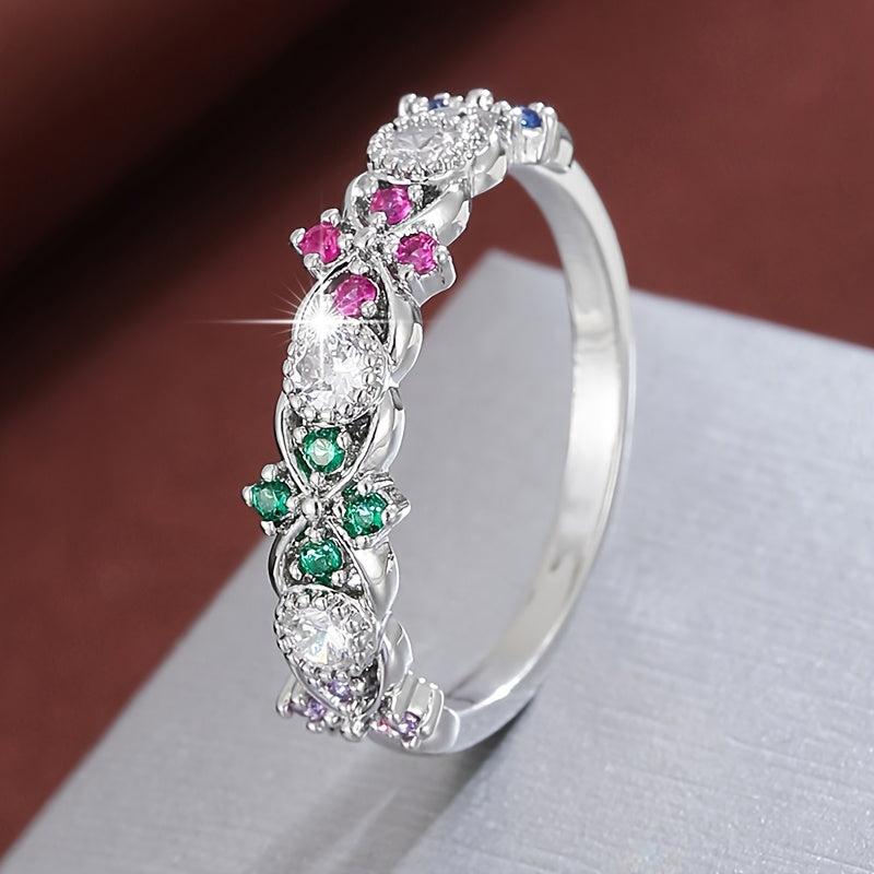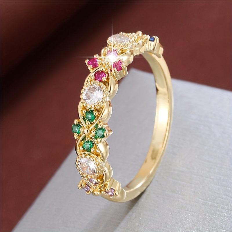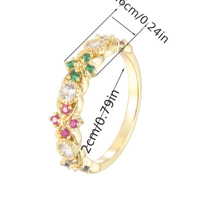 Floral Geometric Women's Ring with Oval Cut Stone & Multicolor Zirconia