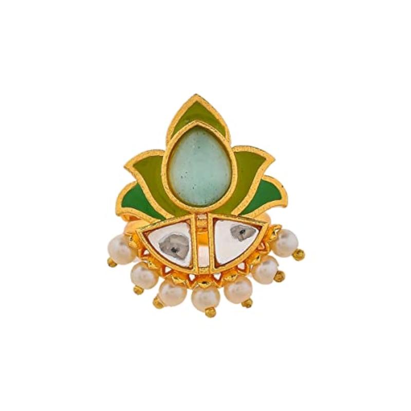 Add a touch of nature to your look with this stunning floral green stone enamelled cocktail ring.